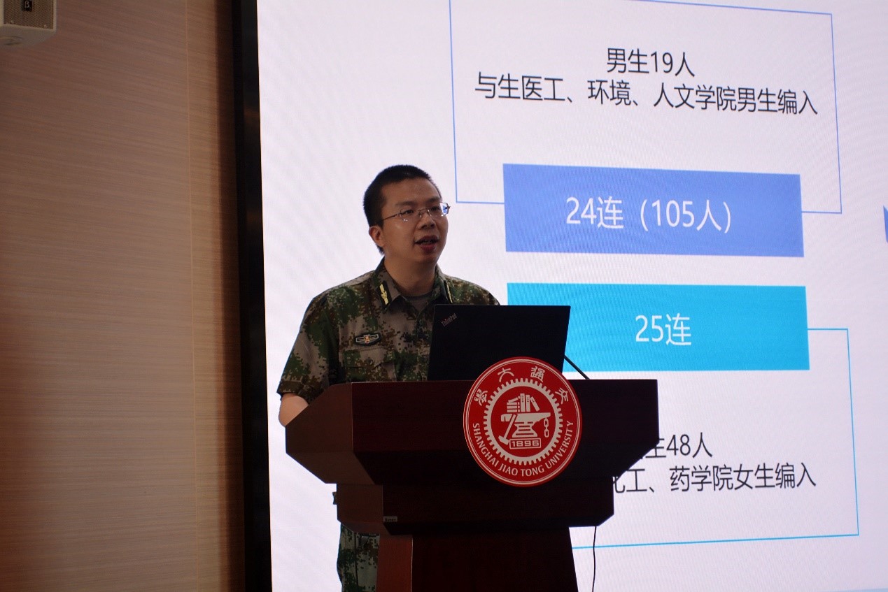 丁剑代表学院向参训教官和教师的辛勤付出表示感谢,高度肯定了全体参训学生的出色表现。他指出,2019级学生军训恰逢建党一百周年,正如习近平总书记所言,“强国必须强军,军强才能国安”,军训对于培养爱国主义精神、增强国防观念、加强组织纪律性、掌握基本军事技能都起到重要作用。同学们要紧抓军训契机,时刻牢记“选择交大,就选择了责任”,吃苦耐劳、团结一致,磨砺意志、铸就军魂,收获强健的体魄和深厚的战友情。最后,他鼓励全体参训学生在接下来的7天军训中继续保持积极势头。