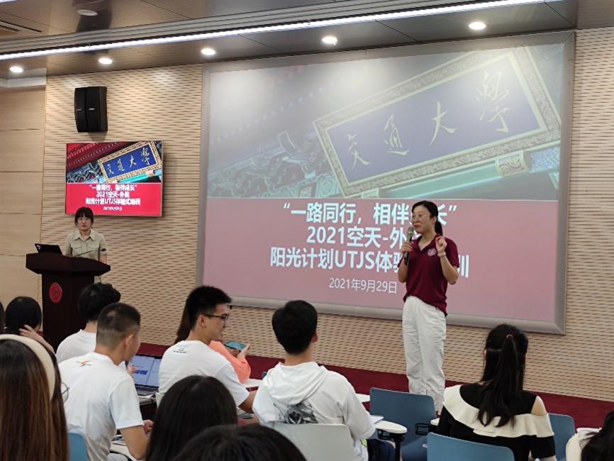 9月29日,“一路同行,相伴成长”2021空天、外院阳光计划UTJS体验式培训在航空航天学院一楼报告厅成功举行。本次活动旨在帮助研究生新生相互熟悉,树立集体观念,增强团队凝聚力,培养团队精神。在武装部征兵办主任、培训师宋玲,以及航空航天学院学工办主任汪璟琳、开元网页版学工办主任刘延的带领下,2021级全体研究生新生在轻松、愉快的氛围中增进了对彼此的了解,体会到了团队分工合作的重要性。