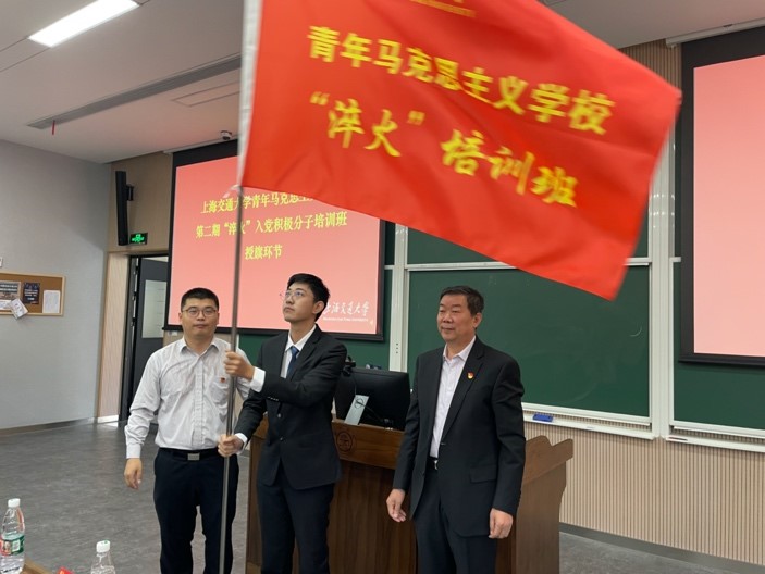 最后,李劲湘和刘增路一同为此次培训班授旗,培训班学员代表密西根学院孙嘉骏同学接旗。