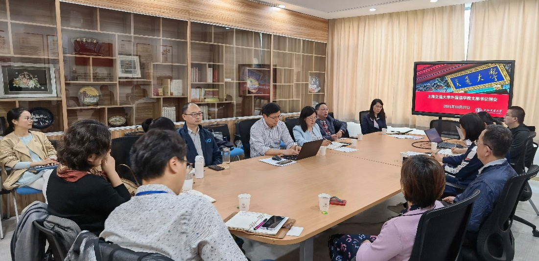 邢连清传达学校巡视反馈相关问题整改工作精神、学校近期基层党建重点工作精神、教育部关于开展第三批新时代高校党建示范创建和质量创优工作的通知精神。希望各党支部认真学习领会上级精神,积极创建“一支部一特色”,支持“一院一品牌”创建。