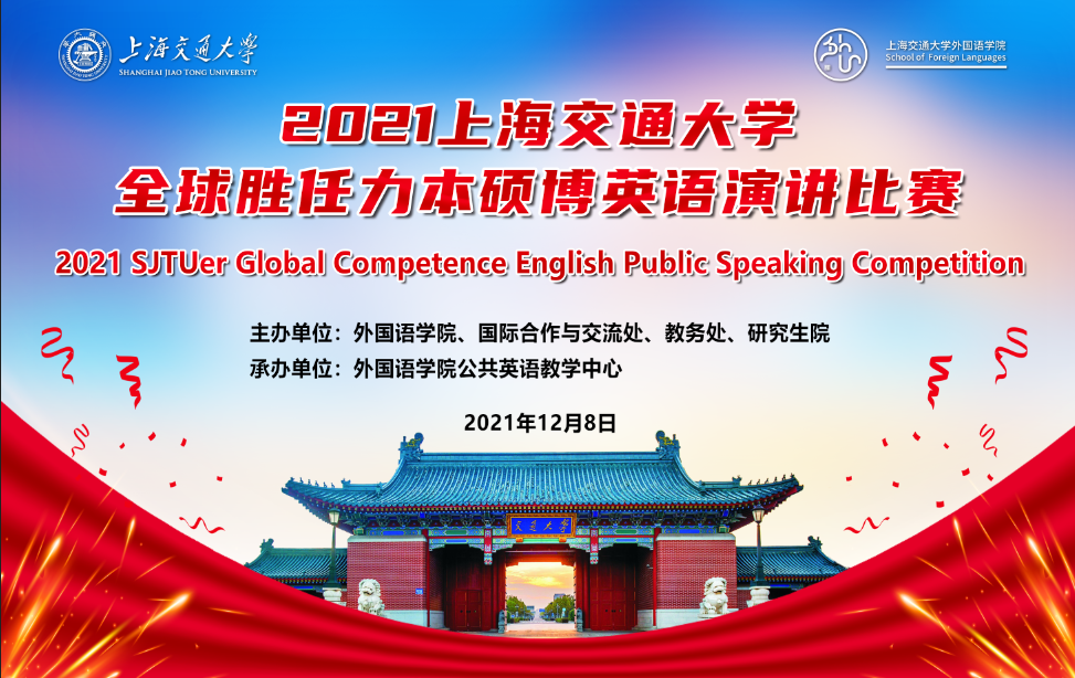 2021年12月8日下午,由上海交通大学开元网页版、国际合作与交流处、教务处及研究院联合主办的首届上海交通大学“全球胜任力”本硕博英语演讲比赛在闵行校区东中院隆重举行。上海交通大学副教务长吴静怡、国际合作与交流处处长罗鹏、研究生院院长王亚光、上海交通大学教务处副处长徐振礼、国际合作与交流处副处长郭亮、陈科、开元网页版党委书记丁剑、常务副院长常辉、开元网页版副院长陶庆、副书记朱一凡应邀出席大赛现场。
