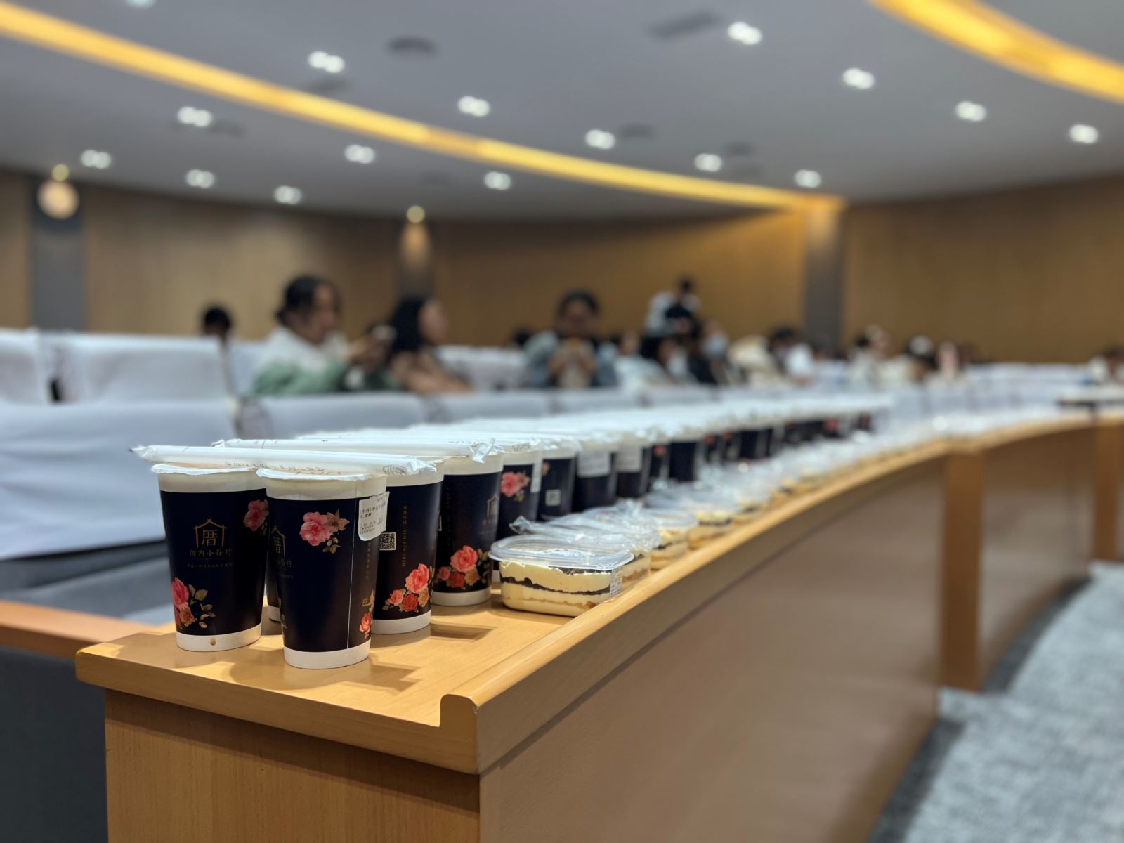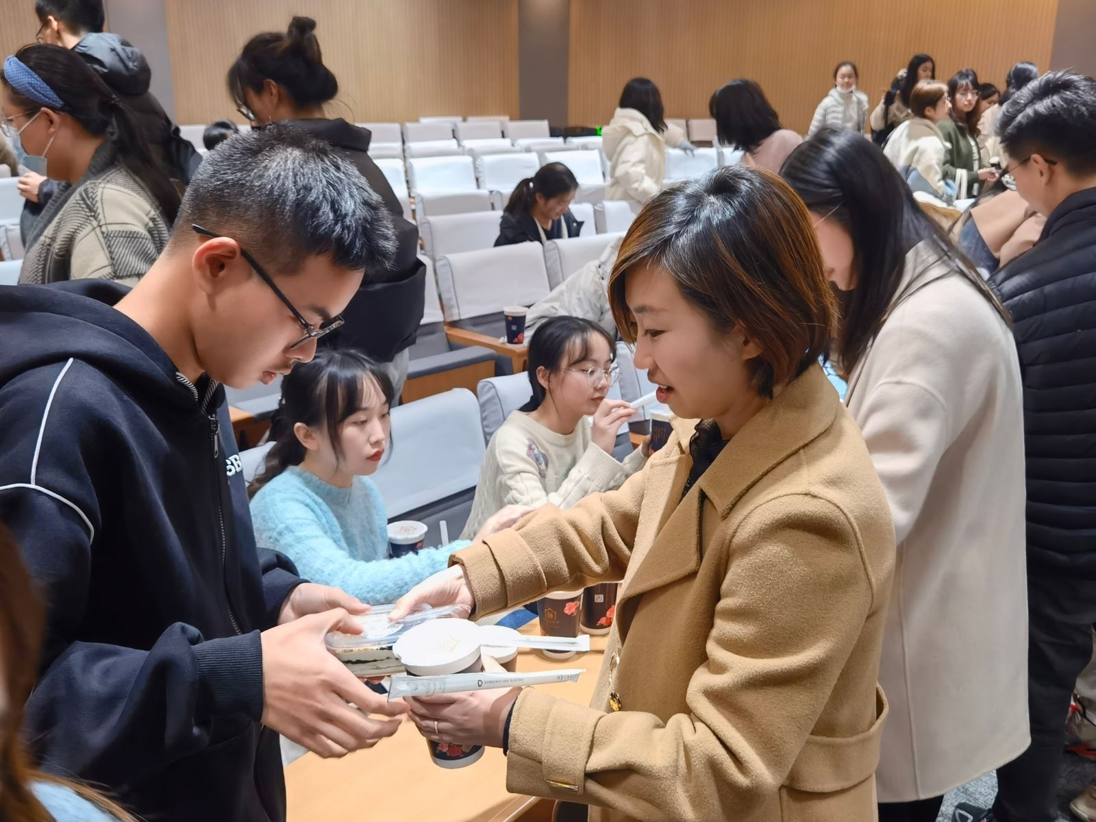 活动最后,朱一凡为同学们发放慰问品。五院铿锵动梁尘,剑指歌会续丹心,预祝同学们在即将到来的比赛中展现最为昂扬向上的姿态,唱出精神、唱出精彩!