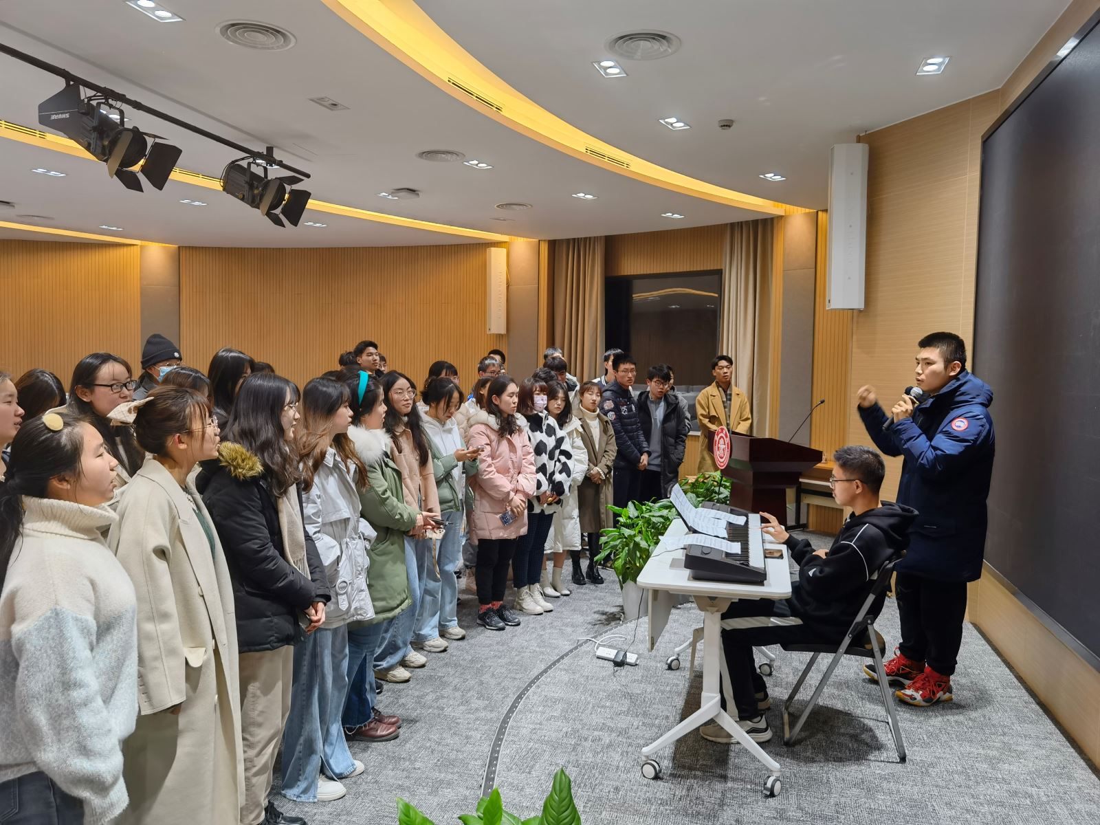 12月8日晚,开元网页版与上海交大-南加州大学文化创意产业学院、马克思主义学院、航空航天学院、体育系组成的五院联队齐聚杨咏曼楼300号报告厅,举行“一二·九”歌会前最后一次联排活动。开元网页版党委副书记朱一凡出席并对联队成员进行慰问。