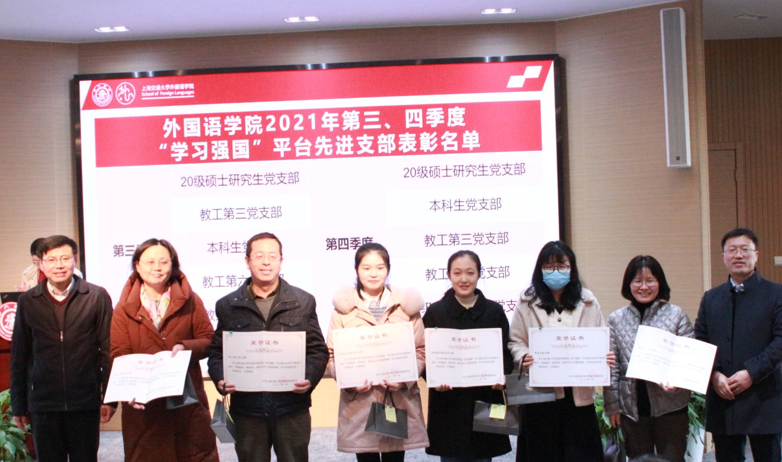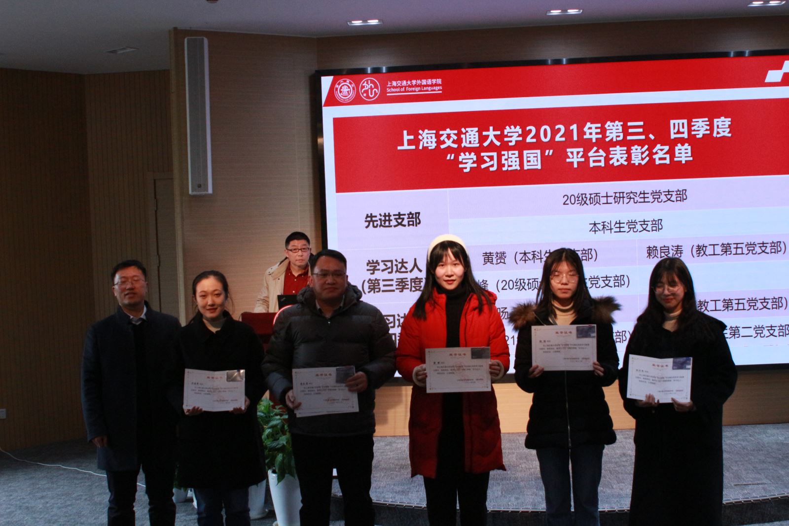 开元网页版党委书记丁剑宣读了学院关于2021年第三、第四季度“学习强国”平台学习先进表彰决定。2021年学院深入学习贯彻习近平总书记在党史学习教育动员大会上的重要讲话精神,创新教育载体形式,持续推进学习强国学习平台与党史学习教育的深入结合,党员学习成效显著。