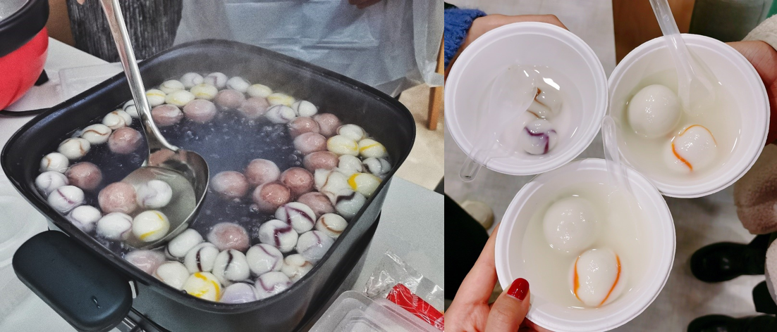 活动前期,学院采购了多种元宵,从芝麻、豆沙等传统经典的风味,到玫瑰花、莓莓榛果、蛋黄流沙、彩纹汤圆等独具创意的新奇口味,品种虽然不同,却都承载着对团圆幸福的希冀。在场同学自发承担了煮元宵的任务,分工合作,体验亲手制作美食的乐趣。