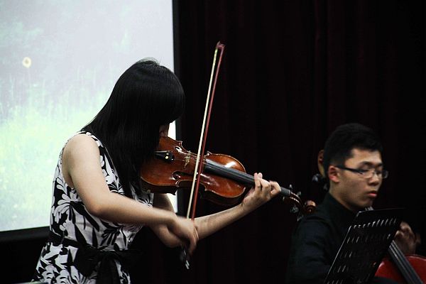 笛箫协会小乐队表演的《喜洋洋》,用轻快欢乐的曲调拉开了表演的序幕,给观众带来一阵清新之感。随后仅学习笛箫两个月的初级班为大家带来《我的祖国》。观众们对他们的表演报以热烈的掌声,表达的既是一种感谢,亦是一种鼓励。