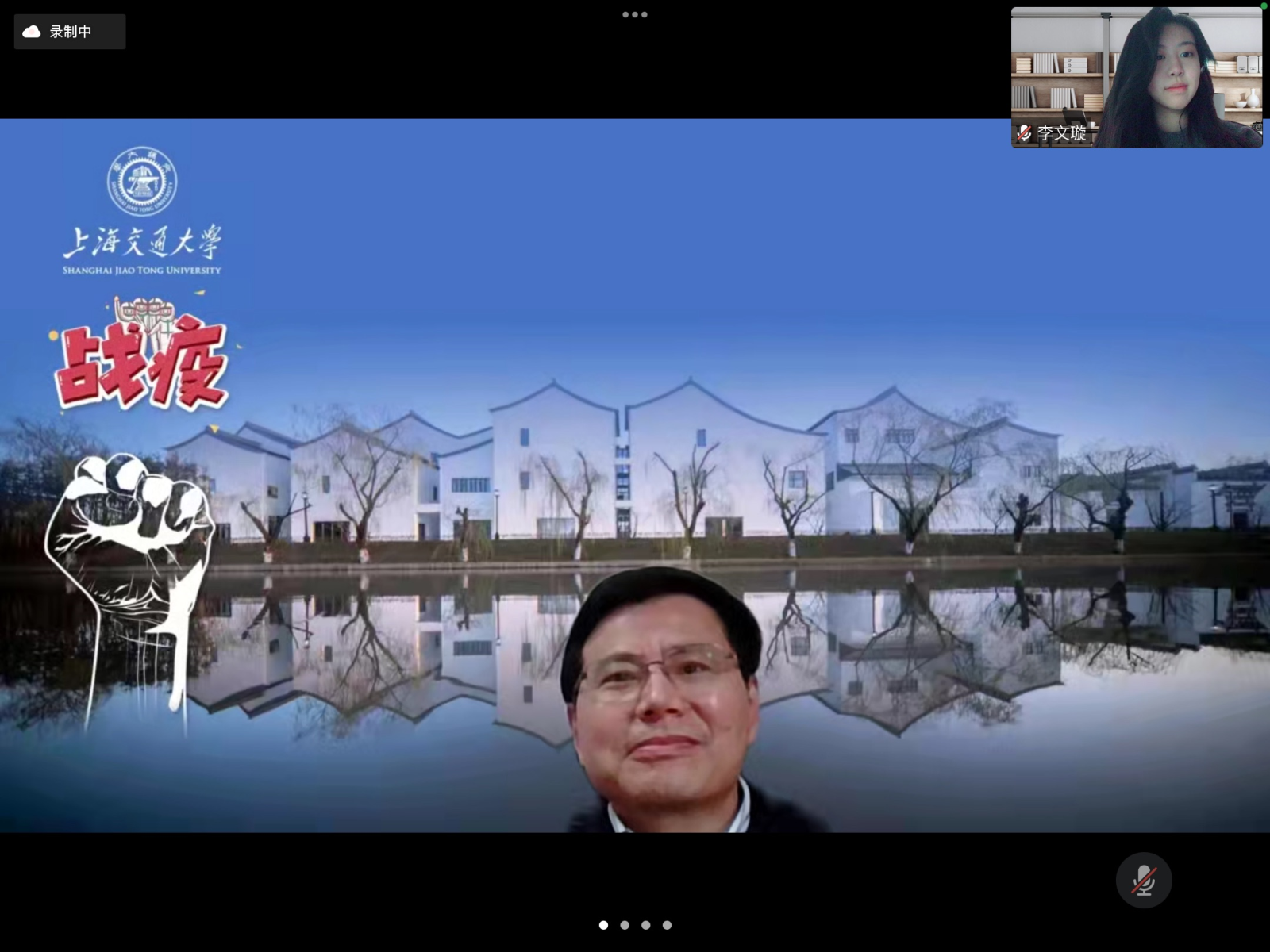 2022年春季学期是20级中医学班(5+3一体化针灸推拿英语方向)在交大联合培养的最后一个学期。3月23日,上中医药大针推学院与交大外语学院联合举办抗疫交流会。上海交通大学开元网页版党委书记丁剑、上海中医药大学针灸推拿学院党总支书记陈秋生、副书记马杰、辅导员胡钟秀等教师与全班同学一同参加线上交流会,沟通交流同学们在校园封闭管理期间的生活及学习状况,