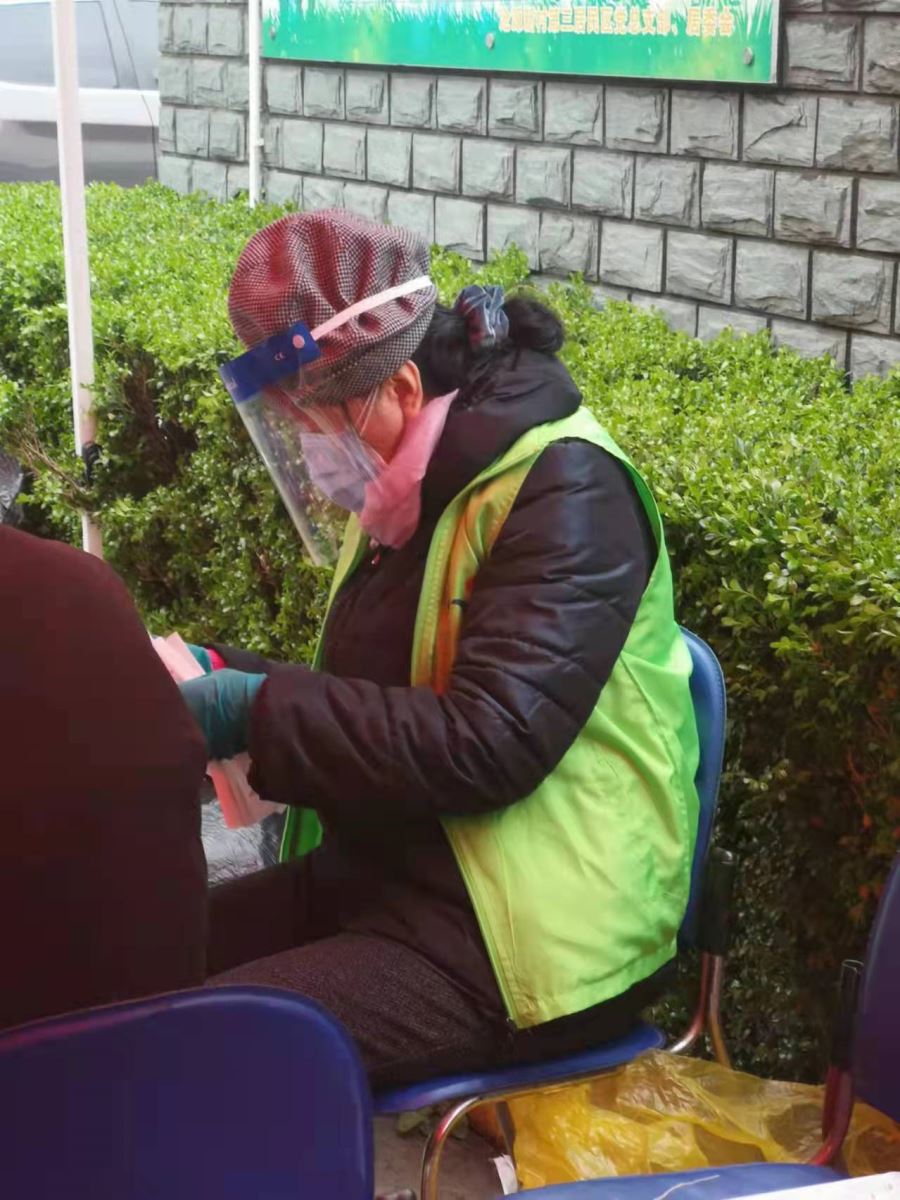 王越西、宣安(已退休)老师主动加入到社区志愿中