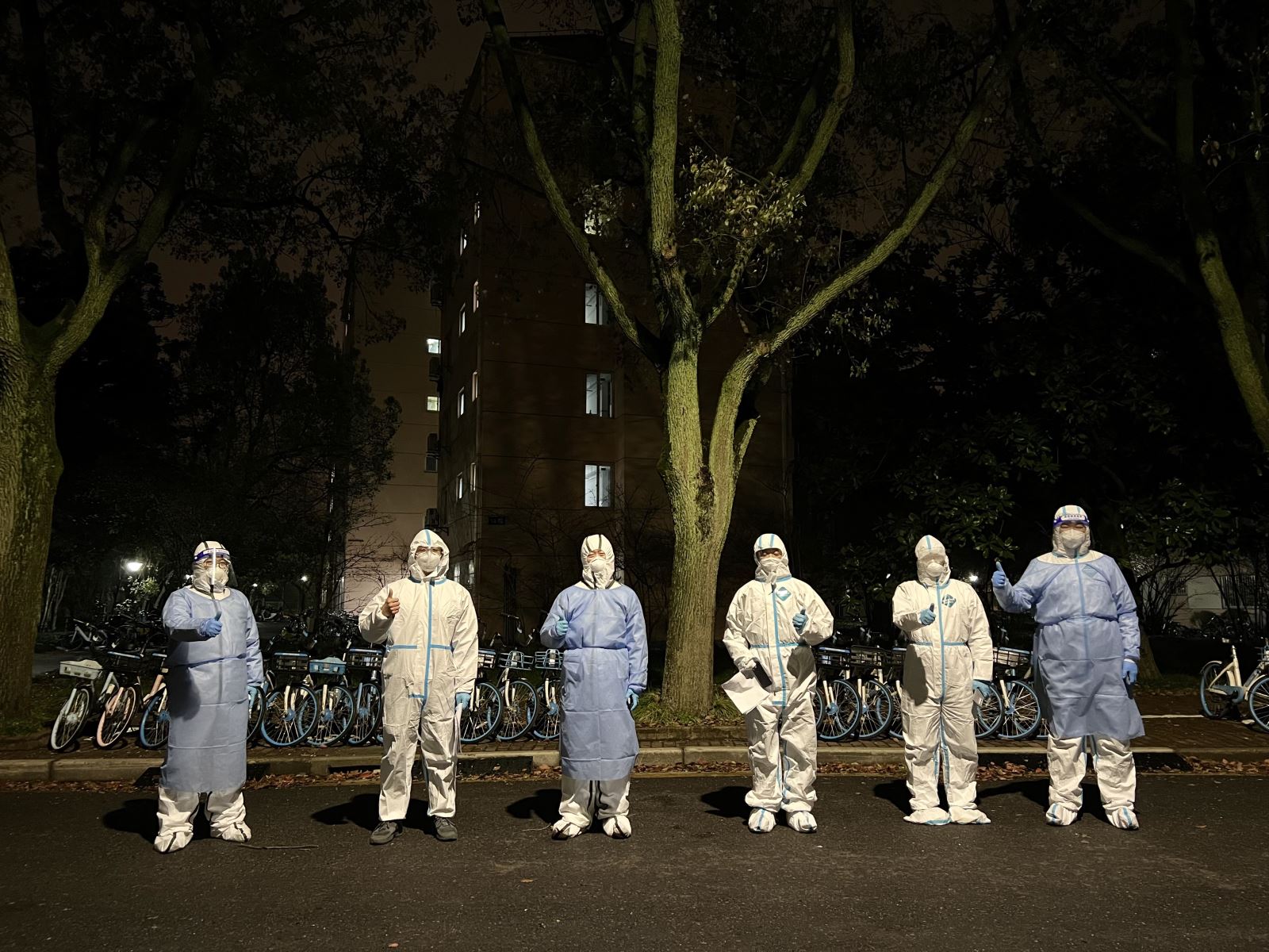 教工第六党支部书记王琳也是这么做的。得知闵行校区封校的当日,王琳老师在校外。本可以不进校的她决定回到校园。身份班主任和党支部书记,她逆向进校。回校之路并不顺利,担心第二天封小区的王老师,凌晨四点出门,驱车前往校门口,一直在车里等待,直到审批通过,校门开启,并第一时间加入到校园志愿者的行列中。