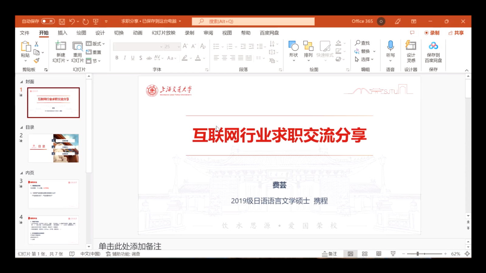 为帮助在校生做好职业规划、丰富管控期间学生在校生活,在学院团委指导下,3月31日晚,由学院研究生会主办的研究生就业分享会于线上成功举行。本次分享会邀请到七位2019级硕士毕业生分享求职经历及心得体会,共吸引五十余名研究生、本科生与会聆听。