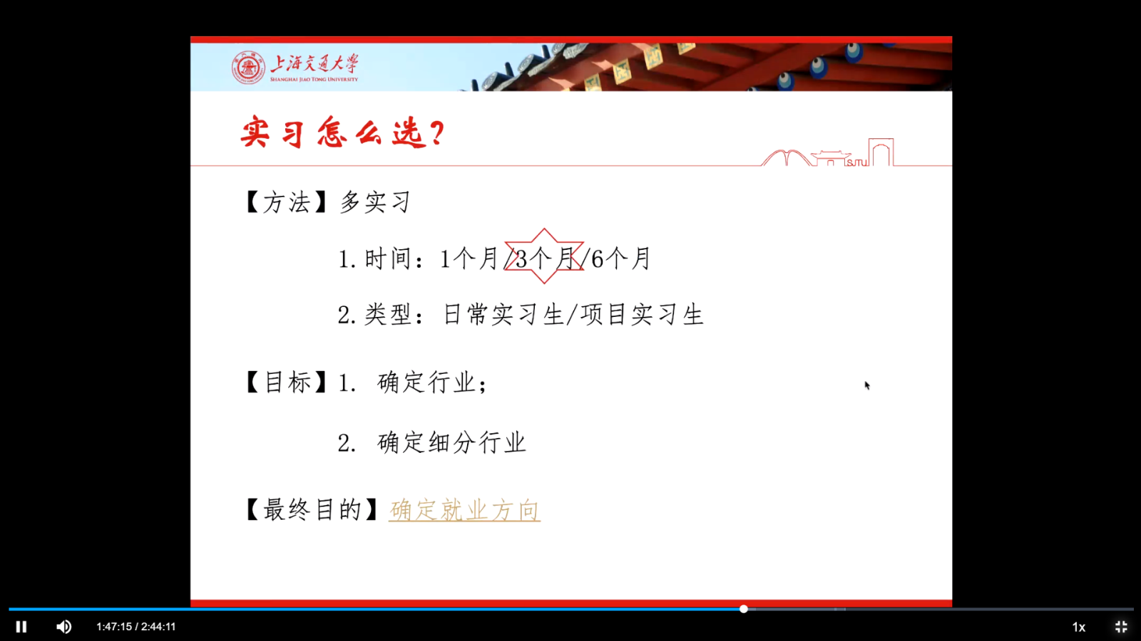 翻译硕士刘清怡选择成为上海银行总行培训生。通过回顾自身行业实习经历,她提醒同学们要在实践中逐渐完善职业规划,充分利用实习逐步锁定目标行业,确定自己的职业方向。