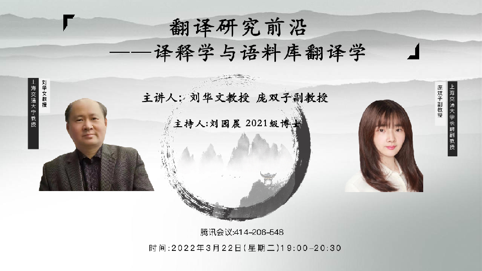 第三讲刘华文教授、庞双子副教授带来首期领航讲座的翻译专场,详细介绍译释学的缘起和构成,讲解翻译研究应当具备的深度意识和系统性,梳理语料库翻译学的学科概况及当前语料库翻译研究的重点和前沿;