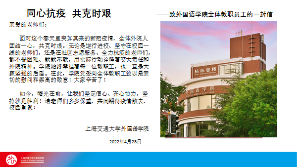 突如其来的新冠疫情,打乱了生产生活、工作学习的常态。无论是坚守校园或居家办公的在职员工,还是退居二线社区抗疫的退休教师,每一位外院人的健康和冷暖,始终牵动着学院党委的心。