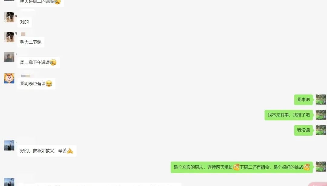 我在上岗第十天被指派为午餐时段的组长,第十三天开始做午晚餐双时段组长。作为组长,我认为最重要的是在工作时要懂得和做到总分相宜,即既要具备整体全局观,能够根据餐厅总体需要系统地统筹和分配好各位组员的任务,又能以各个具体岗位作为基本点,从细处出发,执行和落实每个任务,两相结合,协同组员共同完成工作。其次,组长也需要有处理琐碎事务的耐心,比如工作前的确认出勤人员详单,工作时的组织组员签到、统计和准备餐饭的种类和数量,工作后脱防护服时提废弃物袋、分发组员餐食、抗原,归整防护用品台面,统计剩余各类抗疫物资数量等。再次,组长应该更加具备及时发现问题、高效解决问题和提出合理改进建议的能力,比如,组长们根据工作的实际情况摸索出以“问卷星”投票的形式汇总志愿者每餐的餐食,这样让更为便捷高效,也调动了他们的积极性;我根据实际情况总结出一套穿脱防护服的程序,得到了组里和校团委老师的赞许,也已应用到实际工作中。第四,组长应该具备同时处理多项问题或突发事件的能力,比如同时平衡好门外同学等候时间和东西两个特色窗口前买饭同学的数量,及时解决买饭同学遇到的排错队、估计和调节饭食剩余份数和等候人数等问题。最后,组长也应拥有同和其他人比方餐厅工作人员、组长和组员协同工作、和谐相处的亲和力及调和能力,比如根据组员的必要反馈及时调整其岗位,及时鼓舞、安抚和疏导组员的情绪等,争取齐心而愉快充实地完成志愿者工作。
