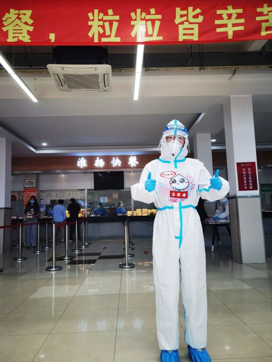 因而,从总体上说,餐饮志愿者本身应具备较强的责任感,吃苦耐劳的精神,坚持工作的热情、善于思考和发现问题的能力,及时总结和改进工作方法的意识,能够换位思考的共情性,及灵活变通的敏锐性等素质和能力。虽然做志愿者会减少自己的休息和娱乐时间,每次结束后脸上留有N95口罩红印、汗水涔涔、周身疲累,但精神上的成就感、充实和愉悦,收获了许多珍贵经验和友情的意义更是不可估量的。比如,每当我和大家一起商量、处理妥当一个难题,工作时看到同伴的坚定笑眸,结束后在树荫里一起沐浴着凉风脱防护服,将杂乱的台面收拾得干净整洁,连续坚持多天一直坚守组长岗且餐厅都保持有序运转,一天两次带队且其间的组会汇报被导师表扬,看到和听到受到帮助的同学的笑容、道谢和“辛苦了”,收到、受到一餐各位经理、阿姨和学院老师对志愿者工作的支持、关照和肯定,遇到巡查的林忠钦校长并看他对我微笑着比“赞”等时刻,我都觉得十分满足而幸福。同时,将个人科研和志愿者工作时间合理安排、有机结合,我能够更加深刻地体会到时间之宝贵,也挑战和增强了自己把控时间、同时处理双份任务的能力。所谓“学用相长”,通过从事这项光荣的工作,我以自身之力为学校的防疫工作添砖加瓦,为师生提供帮助和便捷,一定程度上回报了学校的厚爱,也锻炼了个人能力,相应地实现了个人价值和意义,获得了无价的人生财富。相信多年后再想起这段不同寻常的经历,仍然会肯定自己当初的选择,并为之感到骄傲。