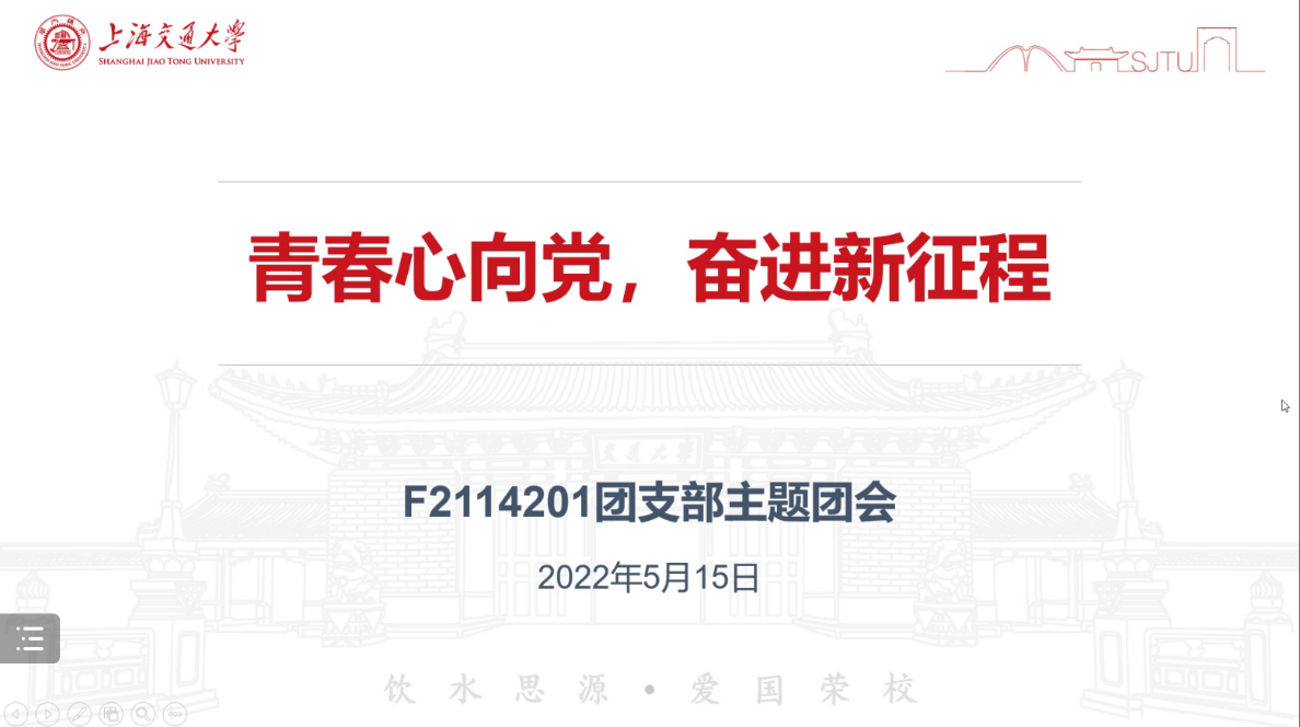 为深入学习贯彻习近平总书记在庆祝中国共产主义青年团成立100周年大会上的重要讲话精神,引领广大团员青年争做时代先锋,F2114201团支部于5月15日晚举行“青春心向党,奋进新征程”主题团日活动。