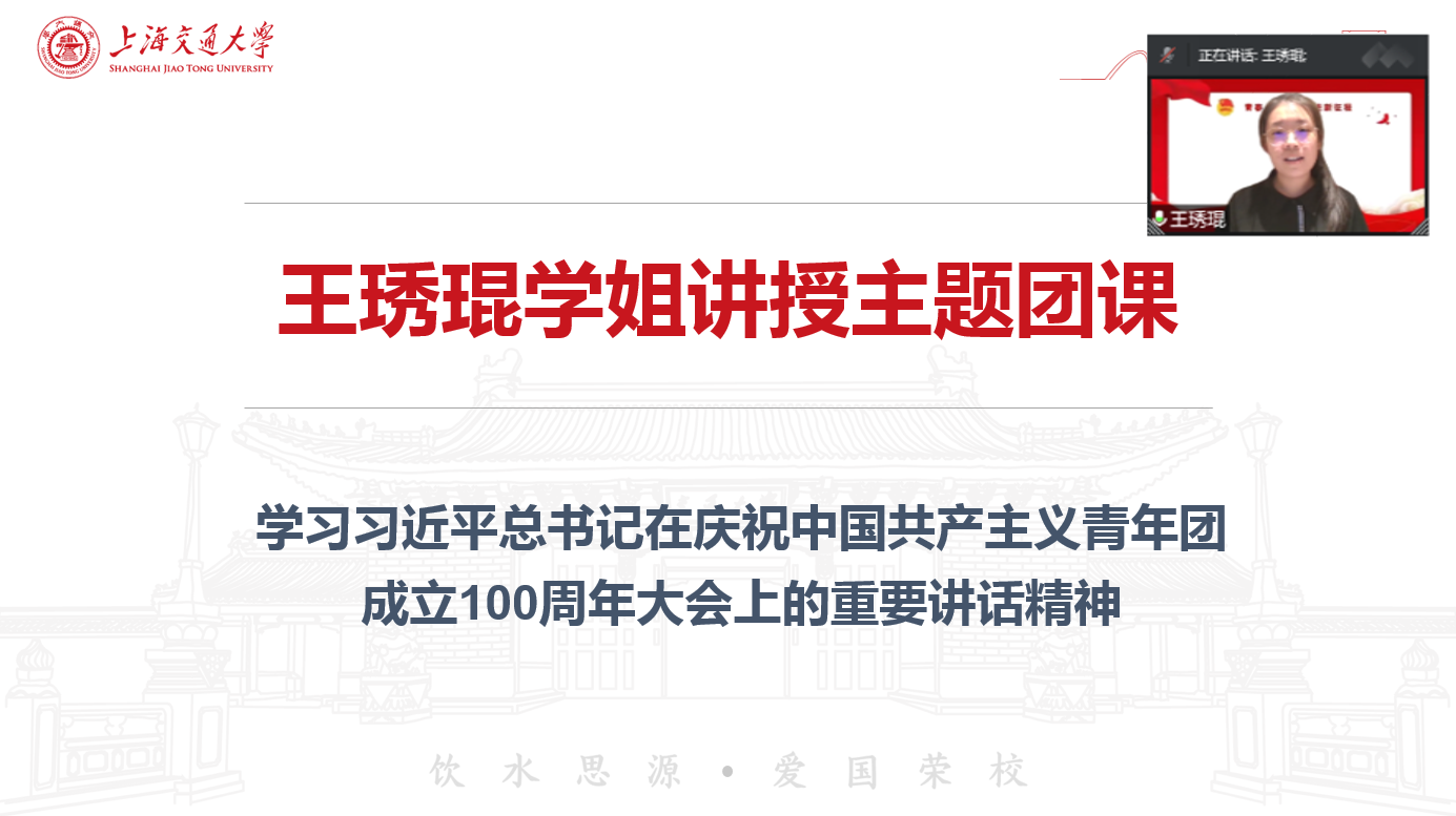 王琇琨带来了一堂精彩的主题团课。她分享了在现场聆听总书记讲话的难忘经历,激励同学们坚定共青团员的初心和使命,向百年前的“新青年”学习,坚定不移跟党走,以奋斗者的姿态担当青年责任,接过建设祖国的接力棒。她通过讲述自己参加联合国青年研讨会的经历与参与团学工作的心得,鼓励同学们积极参加团学工作,丰富理论储备,锻炼实践能力。