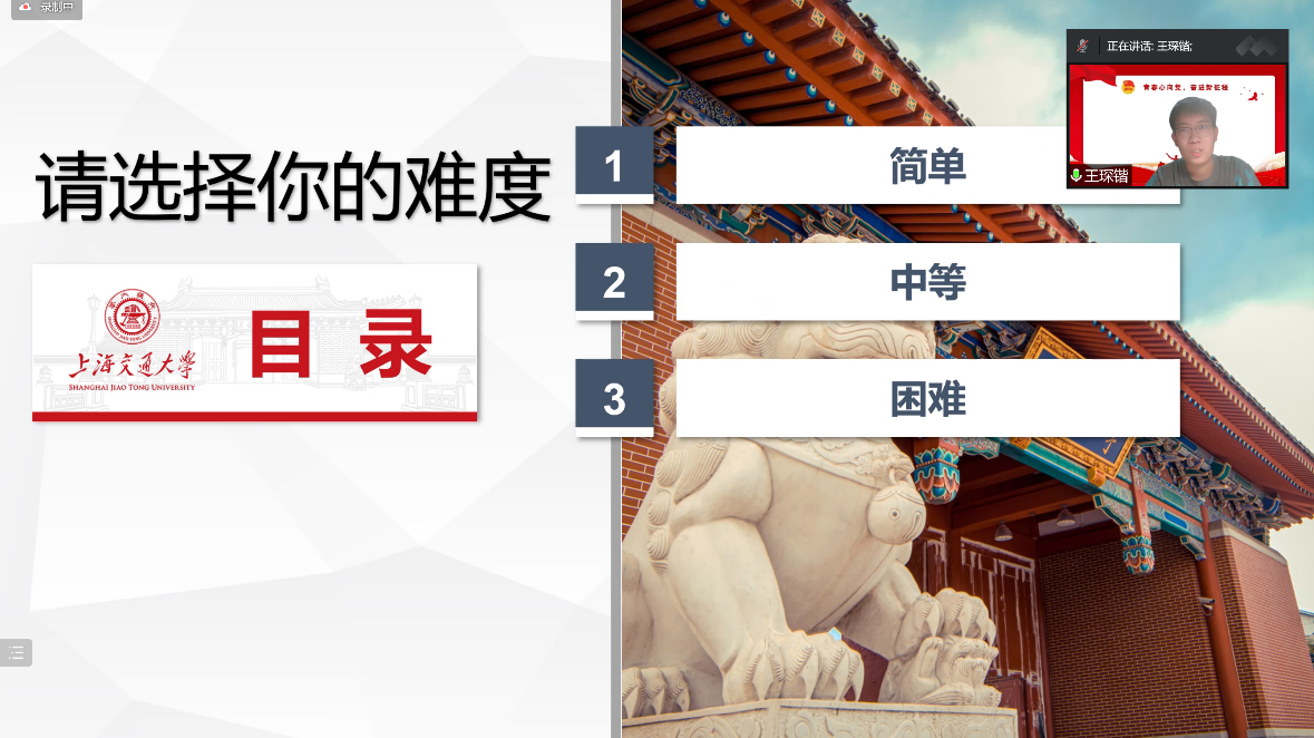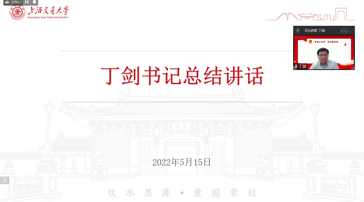 活动最后,丁剑进行总结发言。他首先向一直以来认真防疫的师生表示了慰问,肯定了同学们参加团日活动的积极性。通过分享自己在日本的留学故事,他鼓励同学们在提高语言能力的同时关心国家时事,发挥外语特长,为对外讲好中国故事努力奋斗,为实现中华民族伟大复兴贡献自己的青春力量。他勉励正值韶华的同学们抓住时代机遇,不负祖国、不负青春,牢记习近平总书记的教诲,争做“有理想、敢担当、能吃苦、肯奋斗”的交大青年。