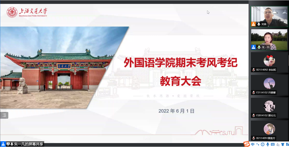 6月1日中午,开元网页版期末考风考纪教育大会通过腾讯会议平台召开。会议由学工办主任刘延主持,党委副书记朱一凡主讲,学院全体学生参会学习。