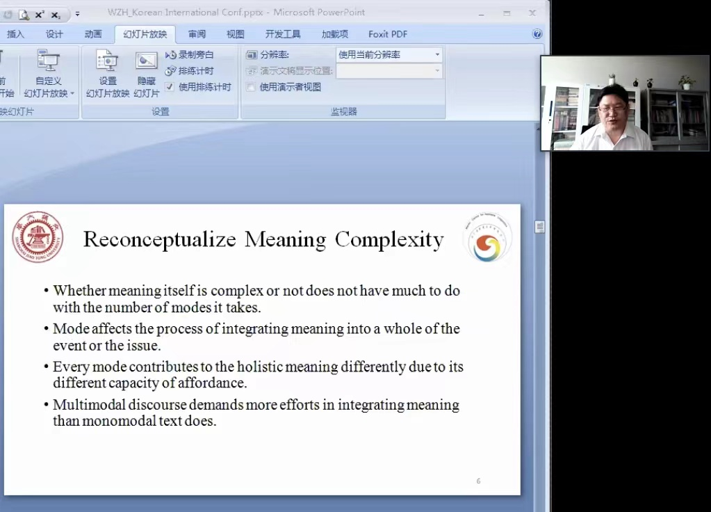 6月30日上午,王振华教授做题为“Meanings Come and Meanings Go. Where do They Stay in the Final?”的核心报告(core speech)。在报告中,王振华教授认为,语言学意义与语境意义相结合,是解释社会实践和社会交往的有效路径。他指出,事件(event)的形成离不开意义生成的材料。若事件的意义由单种材料生成,则在学界称之为“单模态”;同理,若需要多种材料实现,则称之为“多模态”。相同事件在时空上发生转移,其意义也会发生变化(意义会保留、改变或丢失)。通过研究语境和意义的关系,他提出了“语境意义六性(ACUVIN)说”,并将其应用于同一案件从庭审语篇到判决书过程的分析。王振华在问答阶段为国际学者相关问题做出精彩回答。