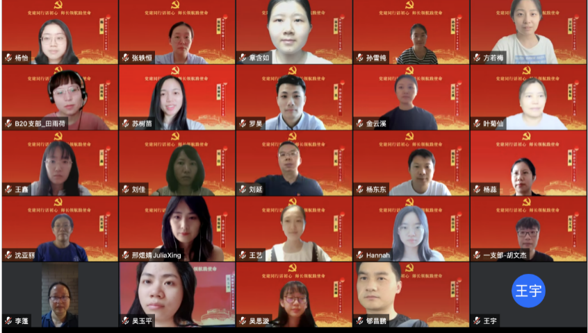 然后,教工一支部、教工七支部、2020级硕士研究生党支部全体成员进行了自我介绍。随后,金小薇、刘晓露、程亦曲、邢煜婧、陈雪梅、罗昊、陈婉蓉等七位校友依次发言。