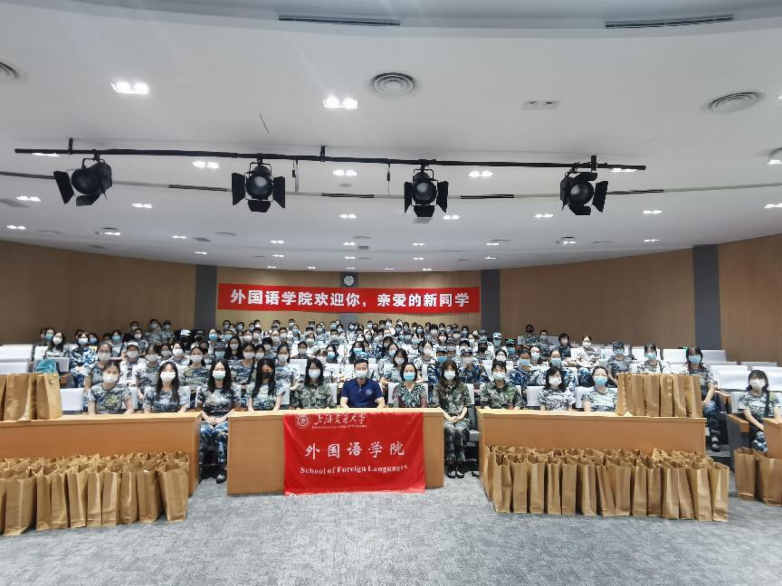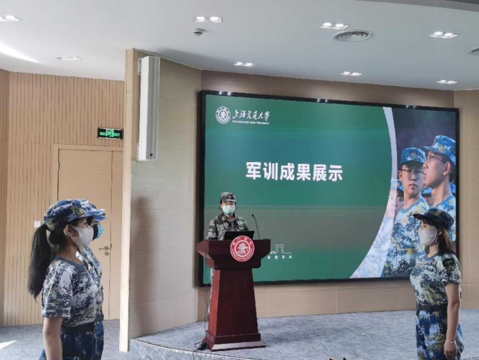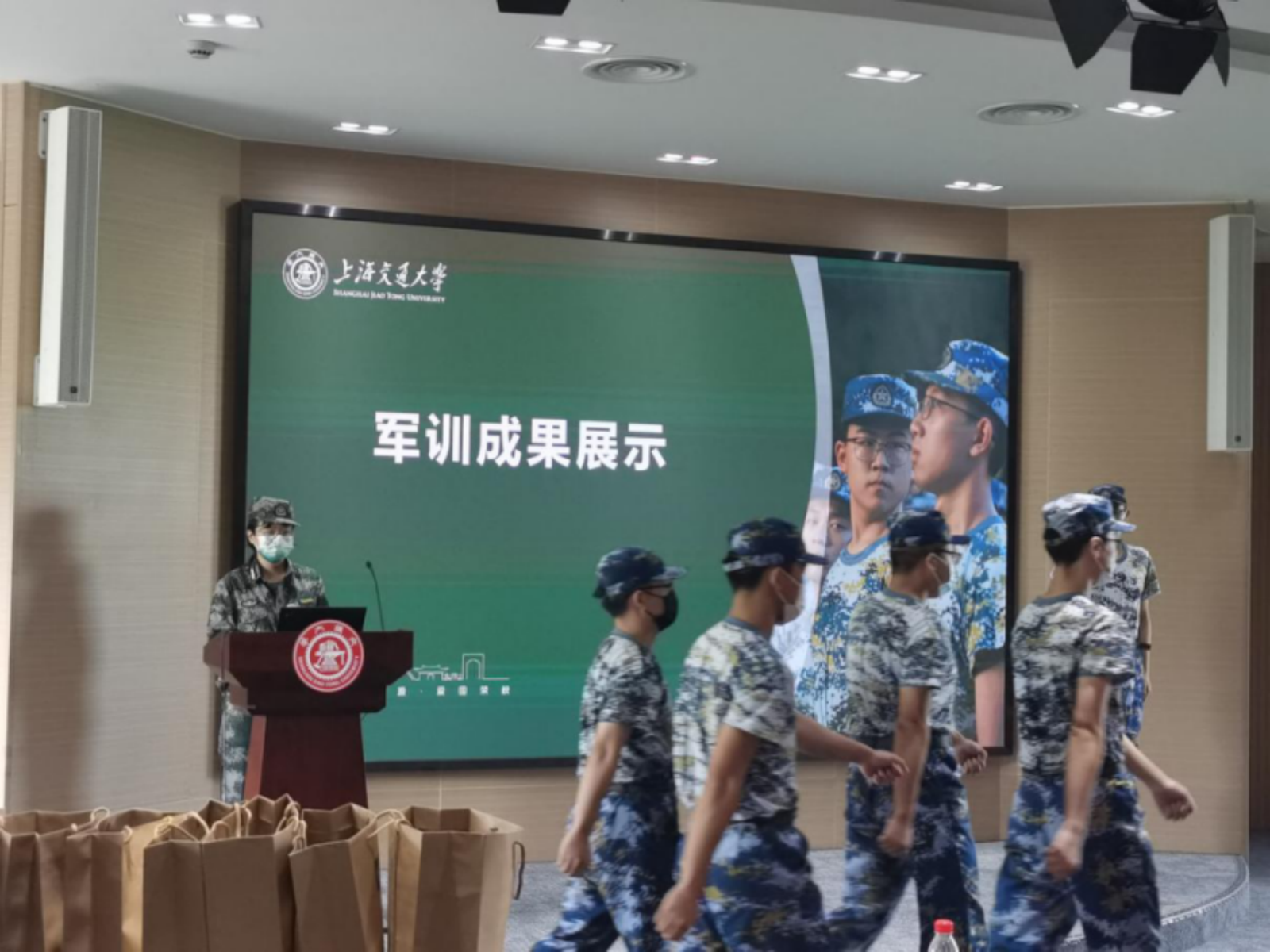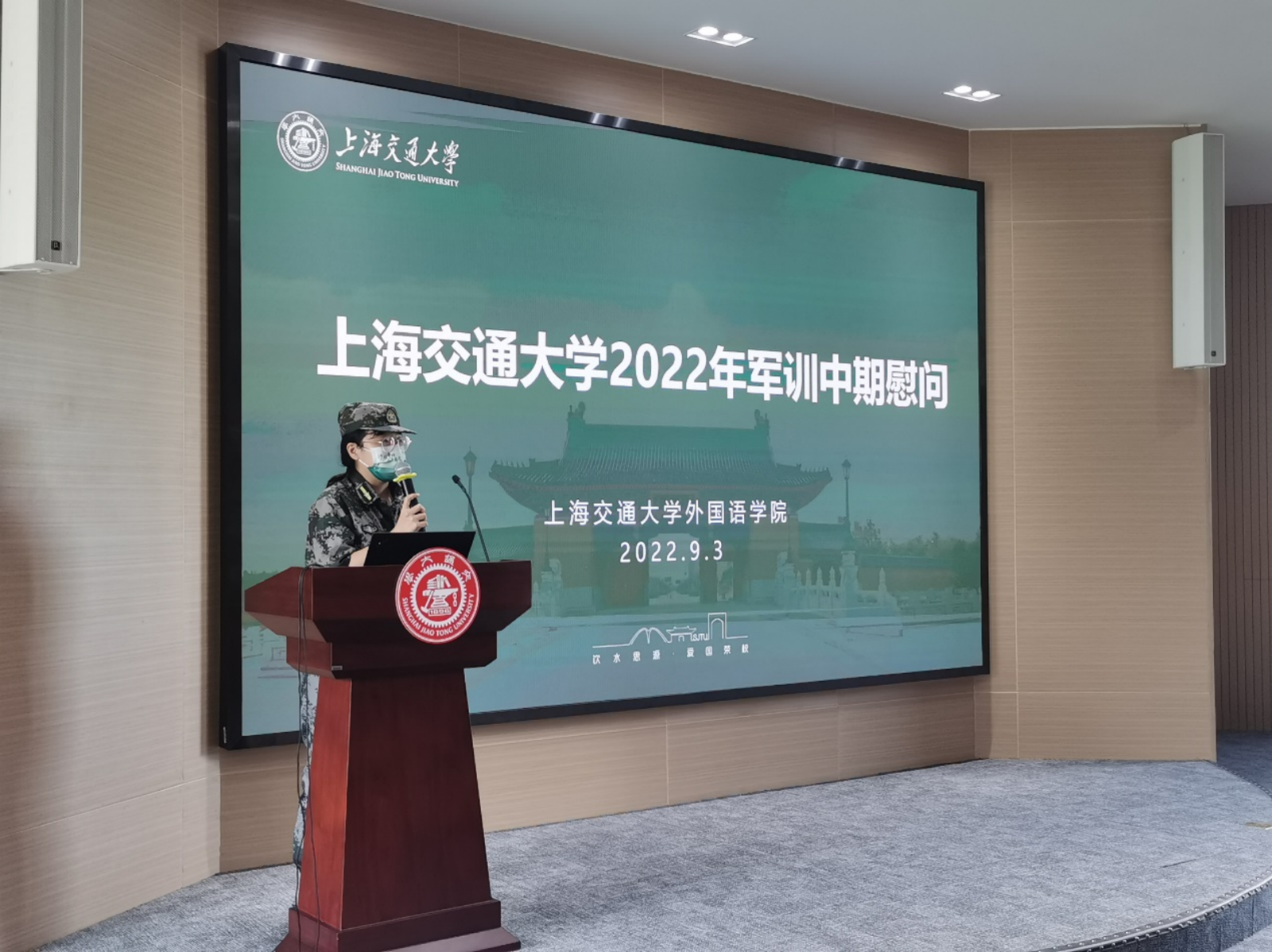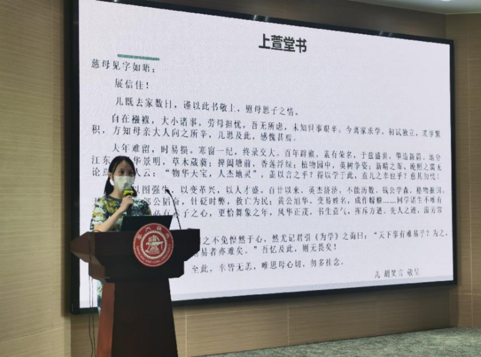 与会师生共同观看军训政工组精彩作品展映,回顾数日的军训生活,聆听2022级日语系胡笑言同学所写家书《上萱堂书》。
