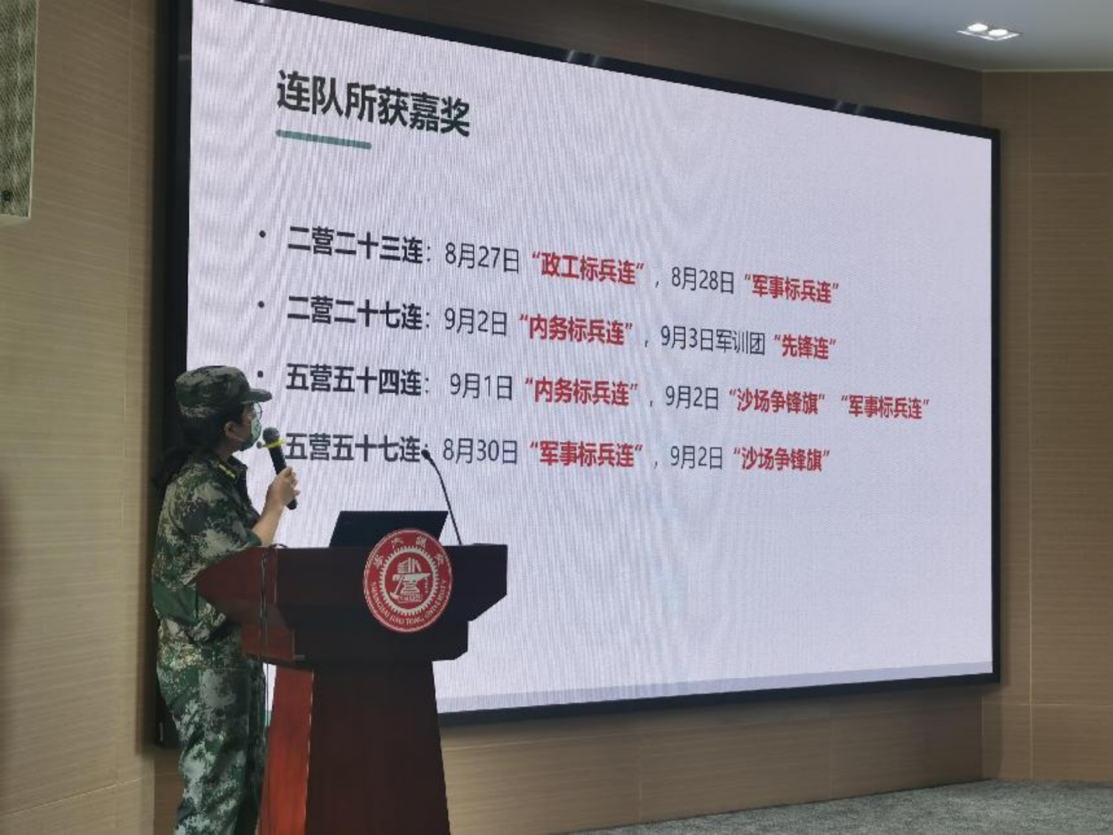 会议伊始,陈嘉翌就本次军训总体情况做报告。本次作训以军事训练、连务会为日常安排,学院组织开展“院长第一课”、专业认知、行业教育等特色活动穿插其中,加强专业引领,丰富学生军训生活。学院全体参训学生积极承担训练、政工等工作,所在连队均取得了优异成绩。