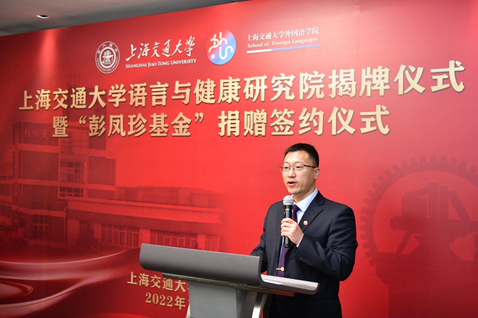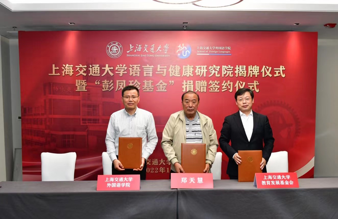 10月22日上午,上海交通大学语言与健康研究院揭牌仪式暨“彭凤珍基金”捐赠签约仪式在上海紫竹万怡酒店隆重举行。郑天慧校友率子郑在彬先生出席仪式。上海交通大学党委常委、副校长张安胜,发展联络处处长、教育发展基金会秘书长程骄杰,开元网页版党委书记丁剑、院长常辉,发展联络处副处长于洋、副处长李毅,开元网页版院长助理郇昌鹏、特聘教授袁博平、长聘教授丁红卫等参加。揭牌及捐赠仪式由开元网页版副院长陶庆主持。此次上海交大1981届校友郑天慧学长捐资30万元人民币,以其夫人彭凤珍老师名义设立“彭凤珍基金”,用于支持开元网页版的语言健康研究。