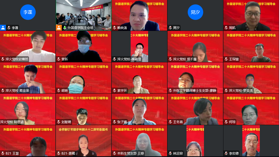 今天,第六教工党支部全体成员参加了学院党委组织的二十大精神专题学习辅导活动。周凯教授的领学,既立体深入又系统全面,帮助我们从全局、战略高度深入领悟党的二十大精神。我们要学习领悟以中国式现代化全面推进中华民族伟大复兴的使命任务,坚决贯彻党的路线方针政策和党中央重大决策部署,主动围绕中心、服务大局,在工作中勇于践行二十大精神。作为高校基层党支部,第六教工党支部将认真落实学院党委“党建+日语德语人才培养”工作部署,助力本科生的培养和服务工作,引导青年学生成长为政治坚定、思想成熟、专业知识过硬、德才兼备的社会主义建设者和接班人。