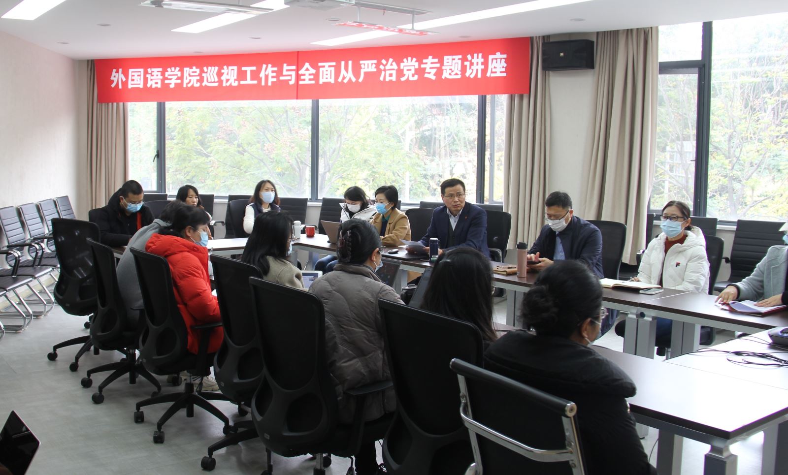 吴淑琴老师从巡视是新时代伟大斗争的制度利器、巡视是从严管党治校的重要抓手、体会和思考等三个方面带领全院党员教师和入党积极分子教师重点学习领会了党的二十大报告和《党章》中有关从严治党的相关精神,并为各位教师讲解巡视工作制度、介绍学校巡视工作开展情况等。