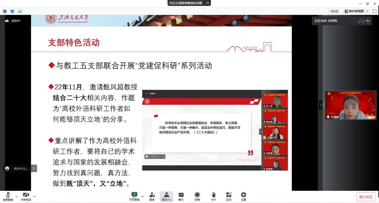 李玥点评道,过去一年来各学生支部“精耕细作”把好学生党员发展入口关,同时立足专业特色、聚焦实际需求,以师生支部共建、学生支部联建为媒,积极开展了丰富多彩的党建活动。党的二十大报告指出,“全党要把青年工作作为战略性工作来抓,用党的科学理论武装青年,用党的初心使命感召青年,做青年朋友的知心人、青年工作的热心人、青年群众的引路人。”期待各个支部能够进一步发挥桥梁纽带作用,带领学生党员、入党积极分子更加紧密地团结在党的周围。