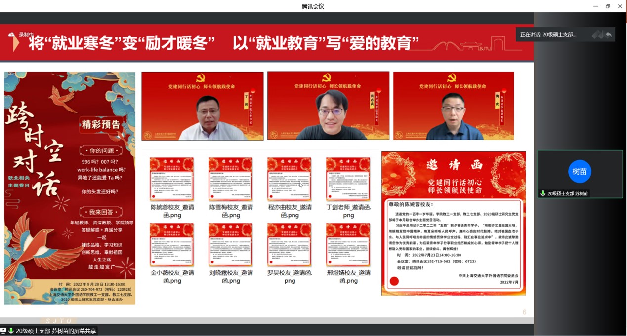 朱一凡就本次述职会进行总结,对学生党支书一年来的辛勤工作给予了充分肯定。她谈到,过去一年来各个学生支部用心谋划,扎实有效地开展了各项工作,取得了较好的工作成效。同时她提出几点期望,希望各支部能够更加注重支委会的建设,在“三会一课”达标的基础上,秉持时不我与的进取心和执行力,不待扬鞭自奋蹄,在党日活动的设计和支部工作的谋划上做实做细,着眼同学们的现实需求,对活动主题、组织方式等再加打磨,探索党建与业务融合的思路点,真正做到“支部品牌亮起来”,新年再上新台阶。