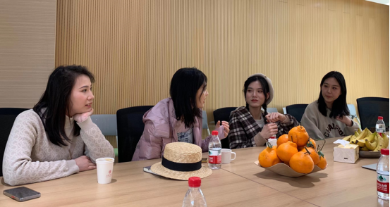 各位校友还给2020级的毕业生解答了就业过程中的疑惑并为在校的学弟学妹们提出了中肯实用的建议。一番热络交流后,大家找回了在校时的感觉,纷纷分享自己最近工作、生活的新进展,聊起班级同学们的近况,还提到在工作中与学校学长学姐们的交集。邢煜婧感谢学院对本次班级返校聚会的支持,并回忆起当年的求学时光和毕业时的场景。她表示虽然并不是直接从事翻译,但是也做着与专业紧密相关的工作,因此,在交大外院学习的这段经历以及在校期间打下的坚实基础对大家的工作、事业乃至人生之路都大有裨益,在未来的岁月里,会更好体现交大求学的意义和价值。
