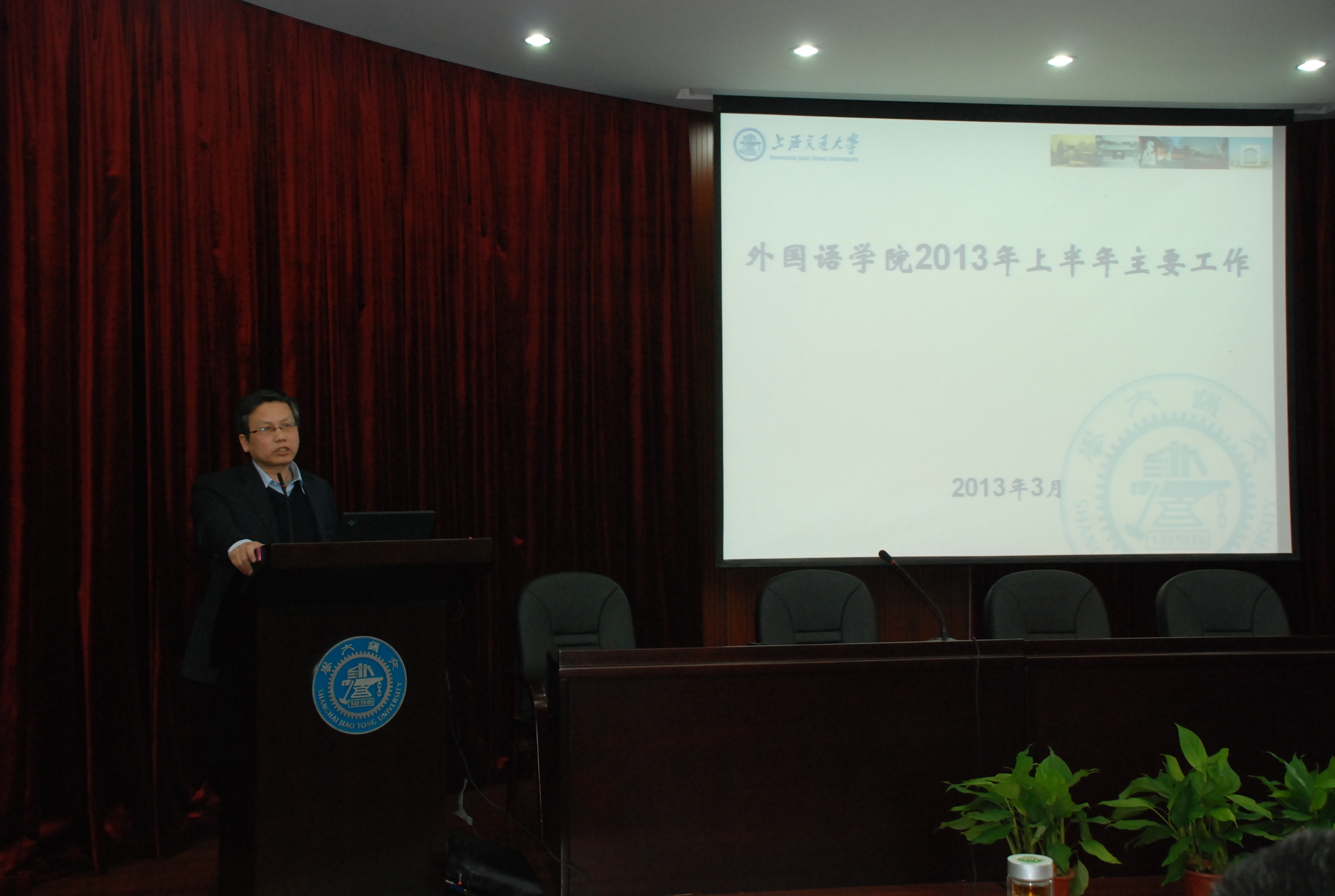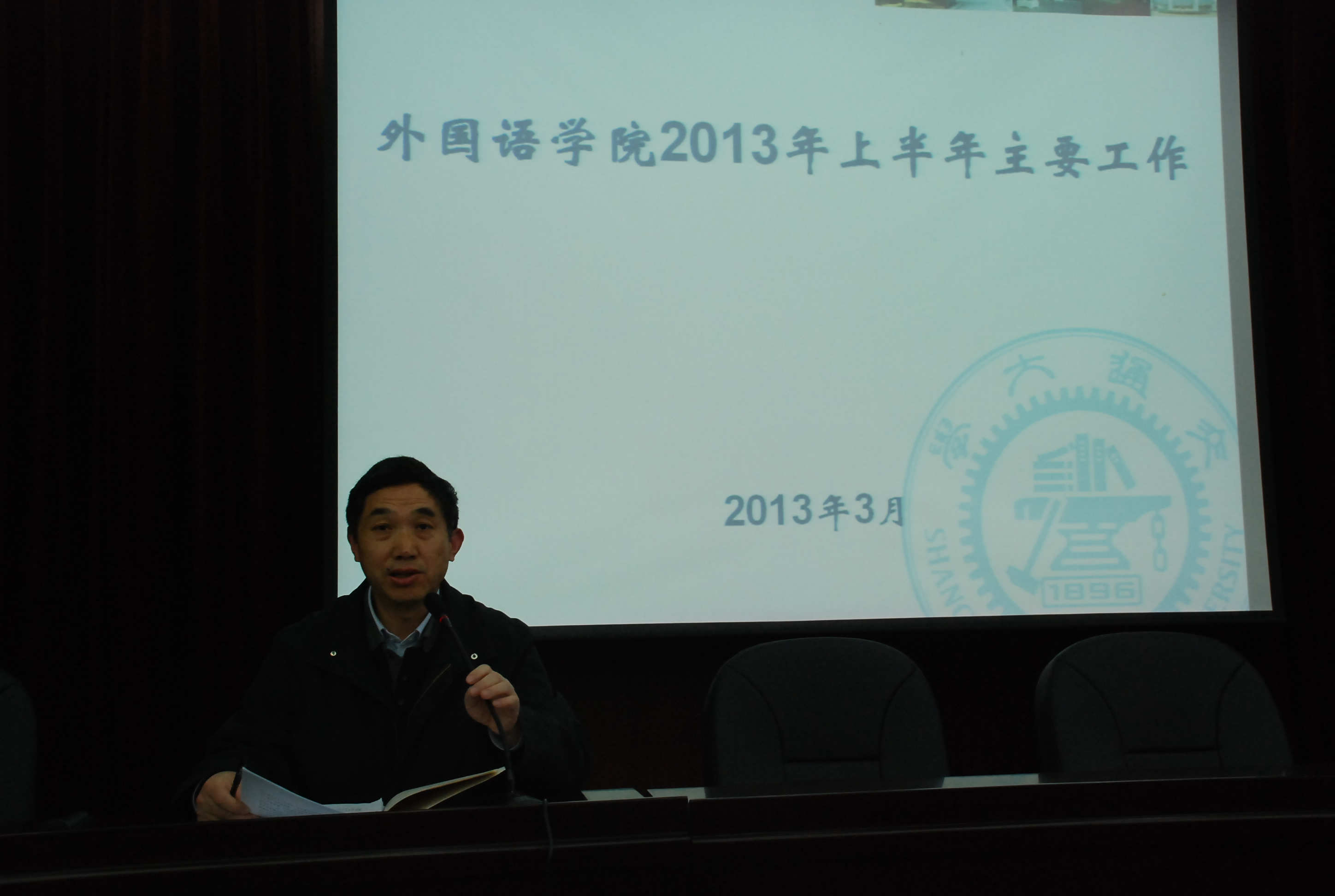 首先,刘龙根书记传达了学校九届十二次全委扩大会议精神,重点强调2013年人事工作要点,要求重视质量工作,加快推进学院内涵式发展,深化制度改革,继续加强师资队伍建设,协同创新,优化管理体系,推动外语学科长足发展,积极贯彻学校“人才强校”战略,不断提升外语人才培养质量。努力创建国内一流、国际上有影响的开元网页版。