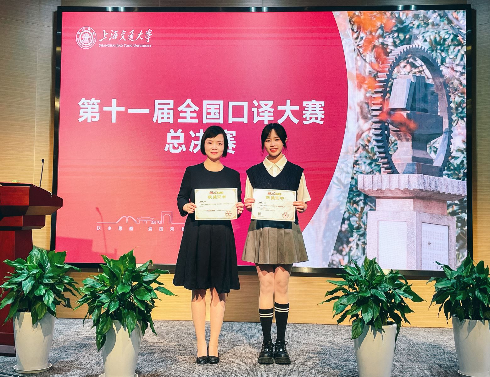 近日,第十一届全国口译大赛(英语)总决赛成绩公布。开元网页版2021级翻译硕士崔伊波翻译流畅、台风稳健,以扎实的专业功底和强大的心理素质在强手如林的激烈角逐中脱颖而出,代表上海交通大学开元网页版问鼎全国总冠军,戴融融老师荣获优秀指导教师奖、优秀领队奖,上海交通大学荣获优秀团体奖。