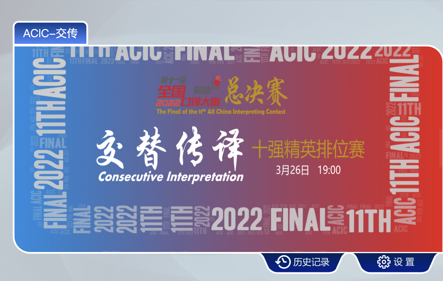 全国口译大赛(英语)是全国范围内规模最大、含金量最高的口译竞赛之一,是中国翻译协会主办的展现全国在校大学生英语口译应用能力的赛事活动,旨在促进翻译学科建设和语言服务行业的繁荣与发展、培养高素质语言服务人才,更好地服务国家发展大局和国际传播能力建设。