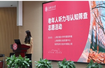 2023年四月,春色溢满交大校园。为大力弘扬敬老爱老助老社会风尚,引导老年人和家人关注听力和认知健康问题,上海交通大学开元网页版言语语言听力中心于4月中下旬在交大闵行校区杨咏曼楼举办了老年人听力与认知筛查活动。本次活动也是以“弘扬敬老之风,关爱老年健康”为主题的师生共建联合党日、团日活动,开元网页版教工第一、第八党支部和团委(F2214101团支部)联合上海剪爱公益发展中心、索诺瓦听力技术(上海)有限公司,共同为交大师生的家属、退休教职工以及附近社区的老年朋友们提供免费的听力和认知检测服务。上海交通大学开元网页版言语语言听力中心主任丁红卫教授、林苡博士,上海剪爱公益发展中心项目经理王会,索诺瓦听力技术公司成员出席了本次活动,交大50余名学生志愿者共同参与。