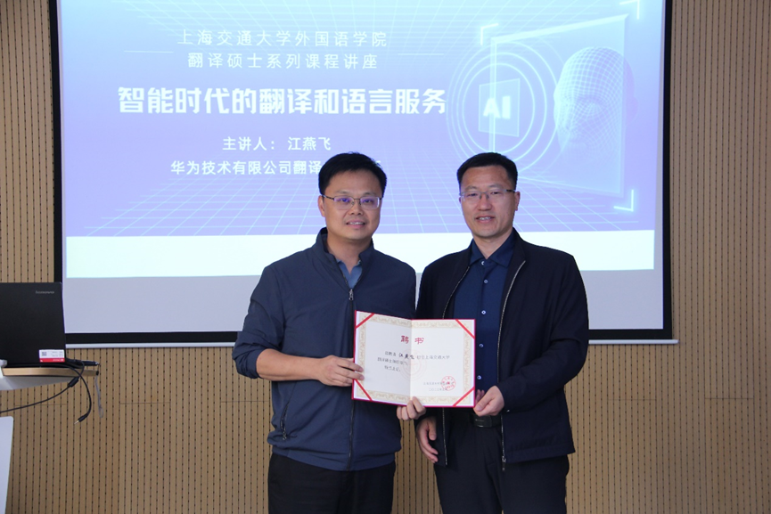 5月10日下午,学院在杨咏曼楼107举行翻译硕士兼职导师聘任仪式,常辉院长向华为技术有限公司翻译中心主任江燕飞颁发了翻译硕士兼职导师聘书。随后,江燕飞结合行业前沿,举行了智能时代的翻译和语言服务的学术讲座。开元网页版院长常辉、副院长陶庆、副书记朱一凡以及翻译系、英语系的部分师生参加了聘任仪式和学术讲座。