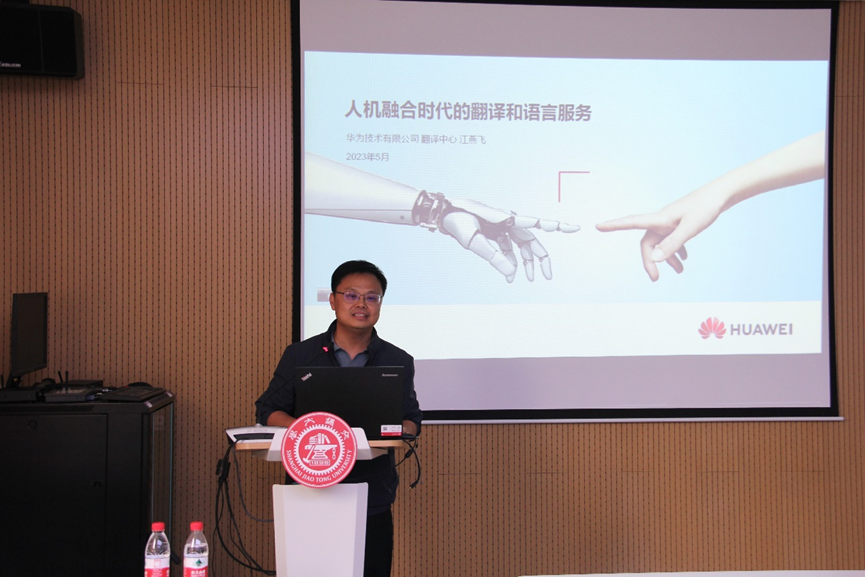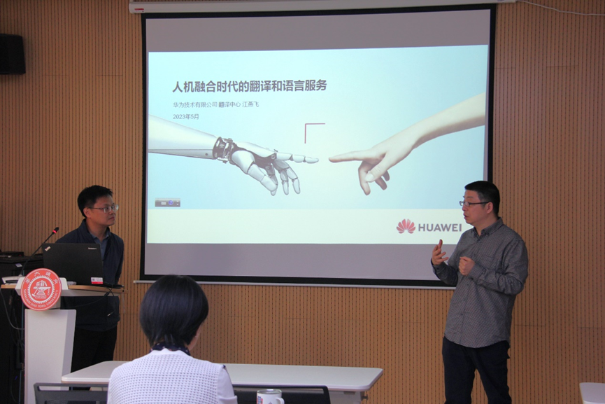 江燕飞结合华为技术有限公司翻译中心的业务和大模型的时代背景,从新时代翻译人才的素质要求、人才培养理念、行业需求等方面介绍了华为公司的理念和实践经验。在座的师生围绕翻译与大模型的关系等主题与江燕飞进行了互动交流。