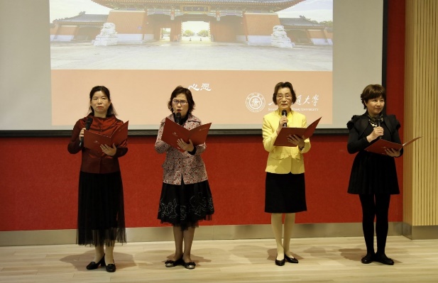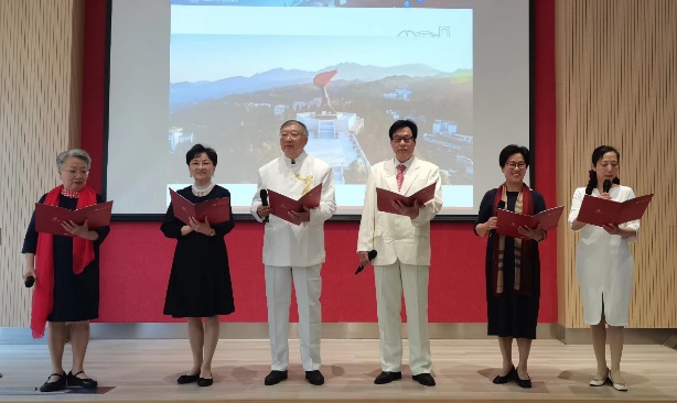 在年会的第一篇章《春意盎然》中,王为明老师参与演出合诵《歌颂我心中的党》。在第二篇章《岁月如歌》中,宣安老师独诵了《魔校》,陈崇君老师参与演出合诵《心愿》。朗诵作品表达了对党、对祖国、对人民的无比忠诚与热爱;表现了对于人生价值的思考、对于亲情友情的赞颂。
