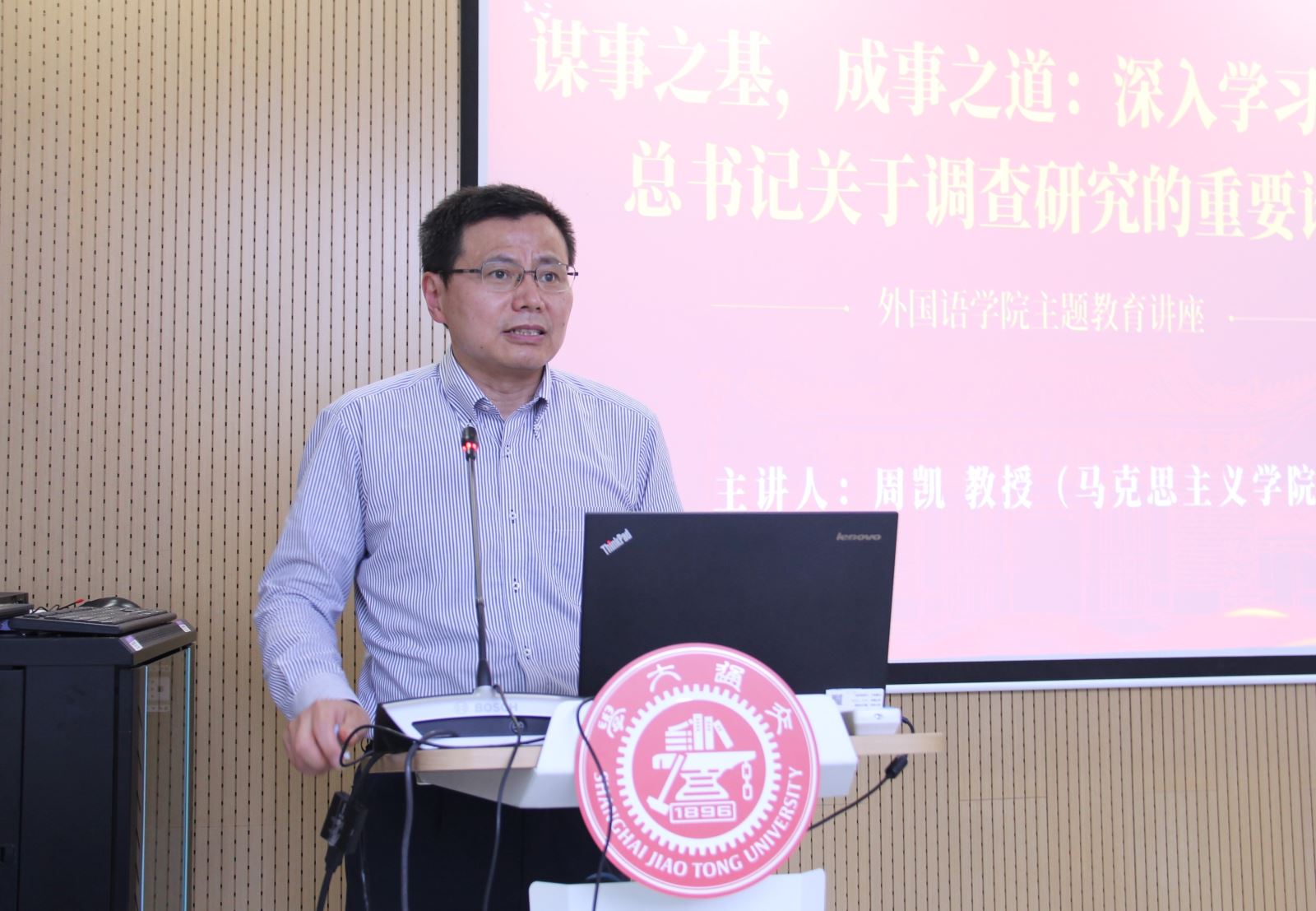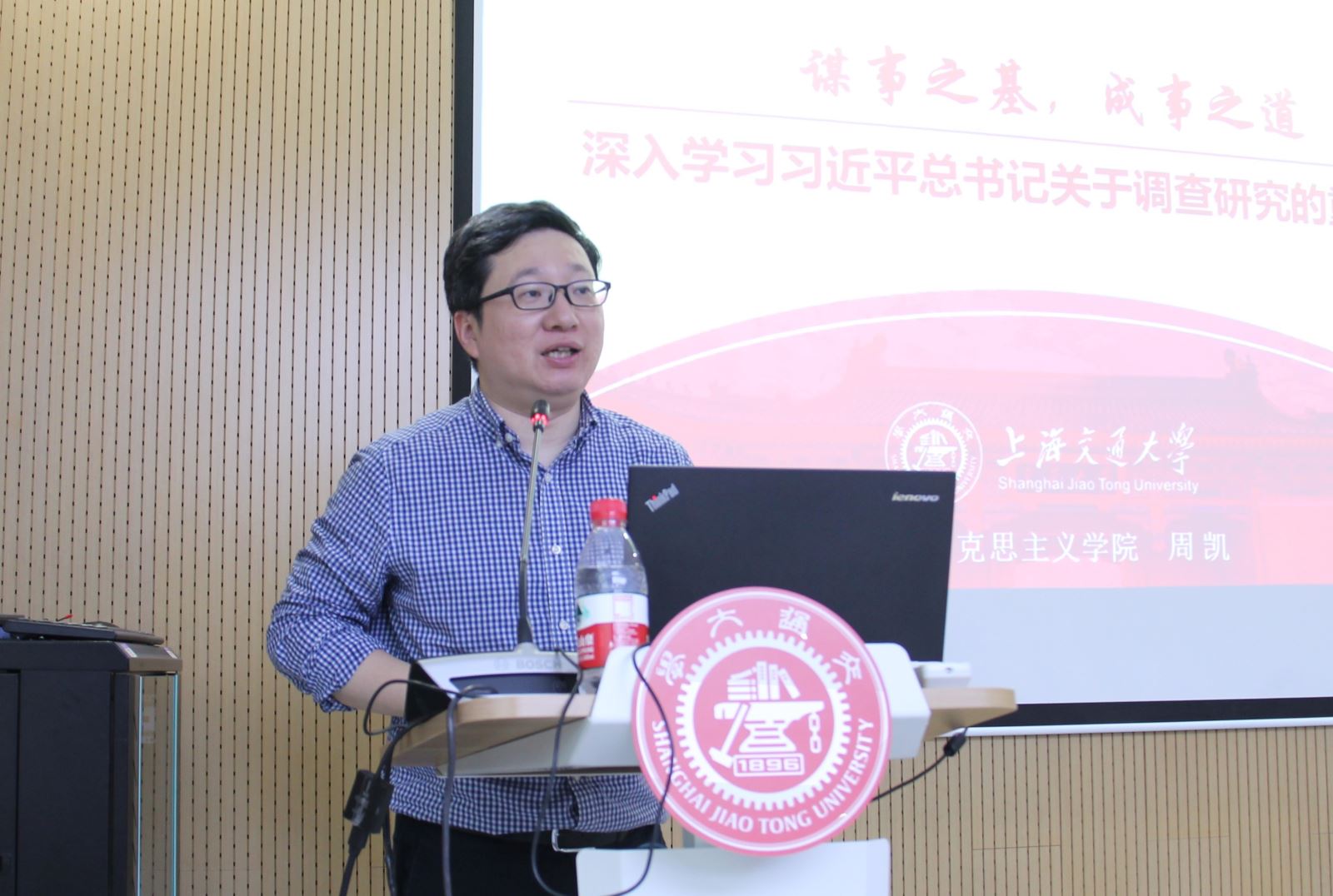 5月17日,开元网页版党委邀请马克思主义学院副院长周凯教授作题为“谋事之基,成事之道——深入学习习近平总书记关于调查研究的重要论述”的专题辅导讲座。学院党委理论学习中心组成员、各师生党支部支委、党外人士代表、党建指导教师等参加学习,会议由丁剑主持。