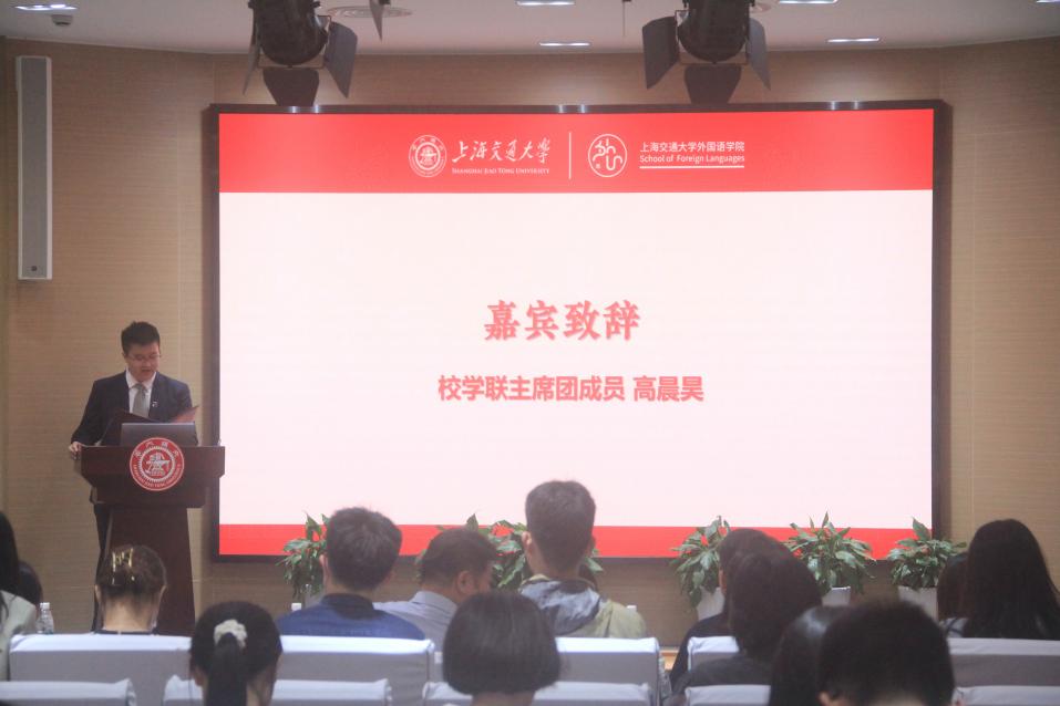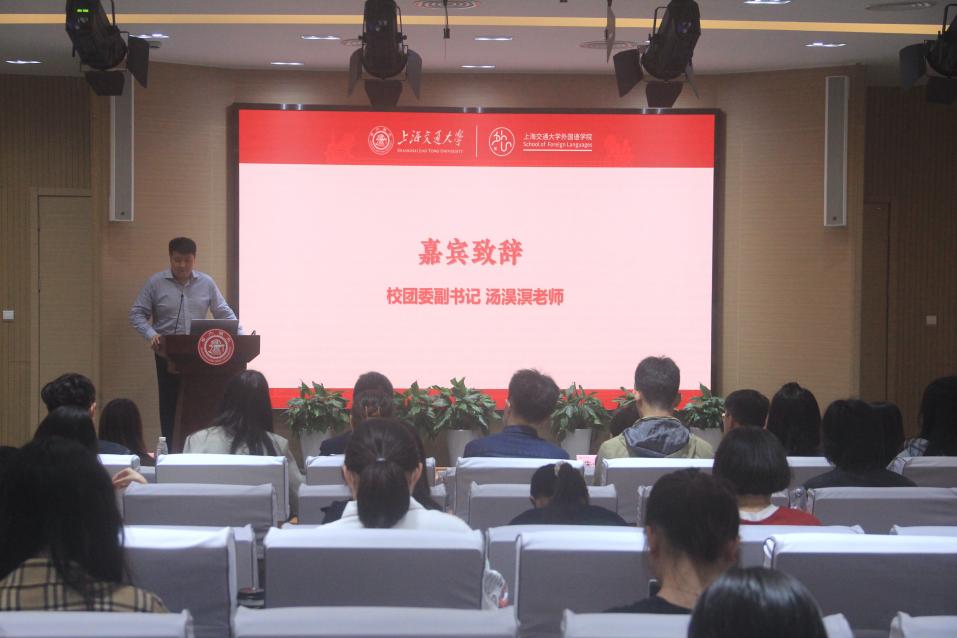 大会在庄严的国歌声中拉开帷幕。校团委副书记汤淏溟代表校团委向大会的召开表示热烈的祝贺。他以抗疫期间外院师生的三个小故事作为引入,对外院师生敢于担当、甘于奉献的精神表示肯定与感谢。他表示,希望同学们继续发扬热情奉献、拼搏付出、勇毅前行的精神,坚定不移听党话、跟党走,在好学笃行中贡献“青春力量”。