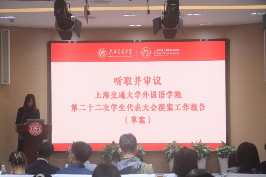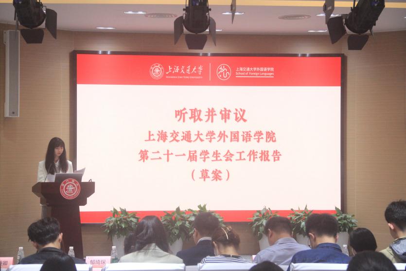 第二十一届主席团成员滕沁芫向大会作提案工作报告,征集整理的提案分为学业活动、校园生活、职业规划三个方面做出汇报。