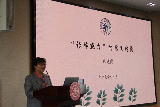 复旦大学祝克懿教授的大会发言题为“修辞能力的意义建构”,由张法连教授主持。祝克懿教授根据互文性理论深入研究了修辞能力的概念意义、范畴类型和结构体系的意义建构过程,并将修辞能力置于历史空间和时间程序中考察其工具功能和社会文化功能。