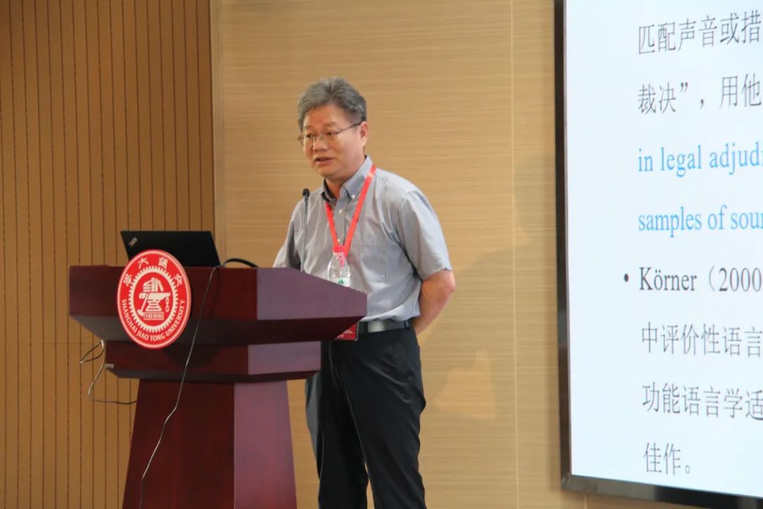山东师范大学葛云锋教授的大会发言题为“网络司法舆情话语研究”,由张清教授主持。葛云锋教授以网络司法舆情话语为研究对象,基于评价理论分析舆情信息及其话语特征等方面,并探讨了影响网络司法舆情话语传播的社会文化因素。