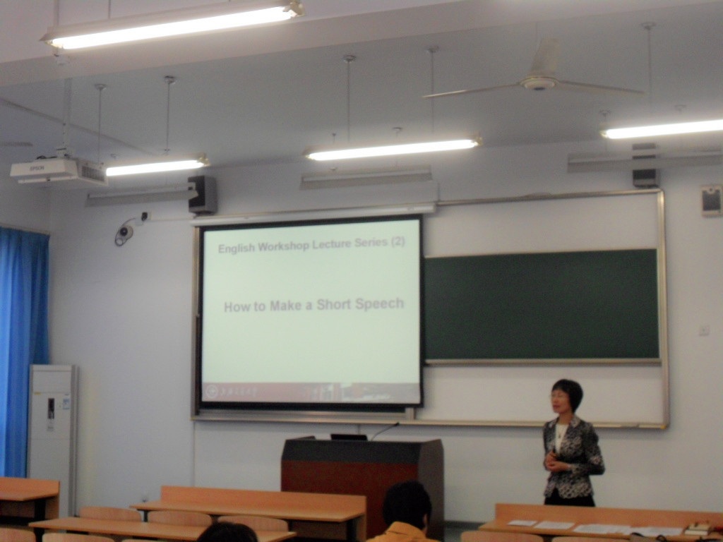 本期工作坊主题是“英文即兴演讲”。首先,杨晓玲副教授全面且精辟地讲解了包括文章结构、修辞手法、语音语调、身体语言等即兴演讲时需要注意的诸多要素。随后,在如何克服紧张情绪、培养演讲自信等方面,在场的老师们也提供了可行的方法和建议并与同学们进行了热烈的讨论和一对一的辅导。最后,几位同学选取了自己感兴趣的主题并在老师的鼓励下登台演讲。