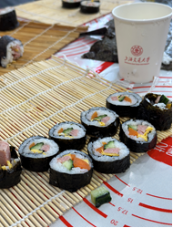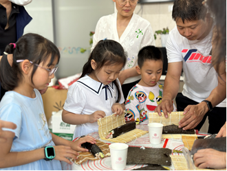 孩子们在大人的陪伴下,亲自体验了寿司和饼干的制作过程,每个孩子都做出了世上独一无二的美食。