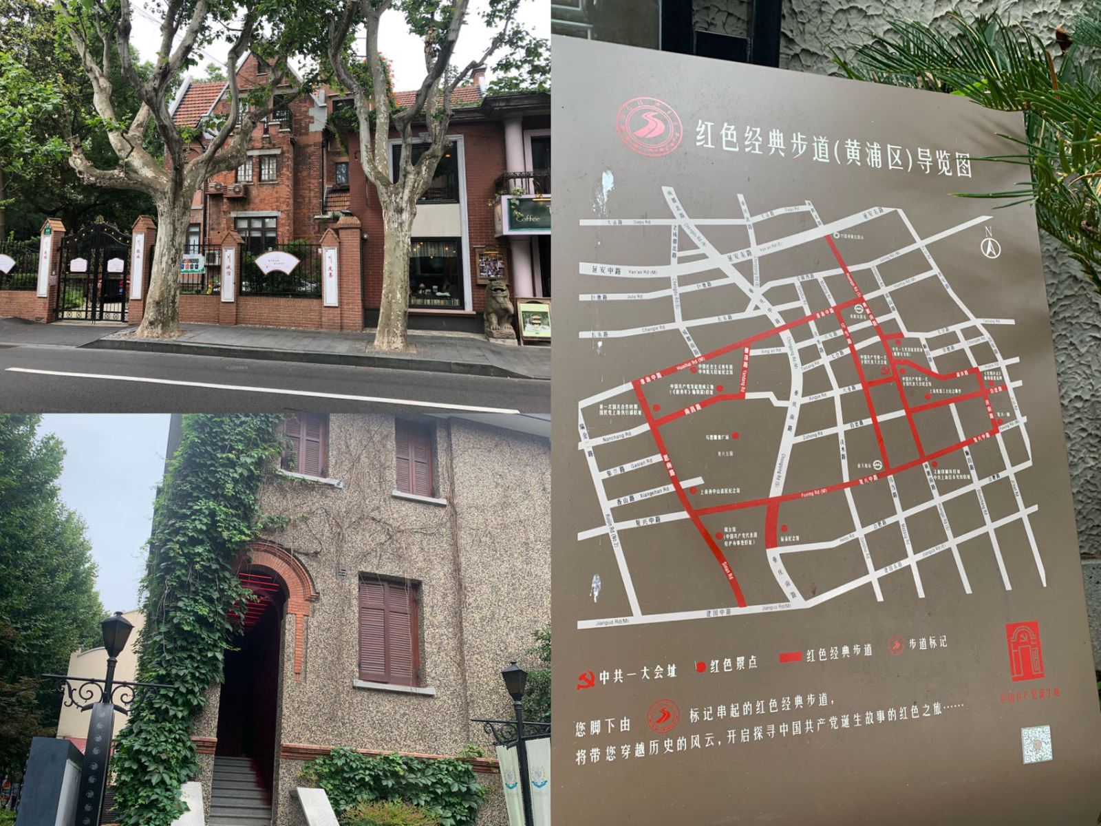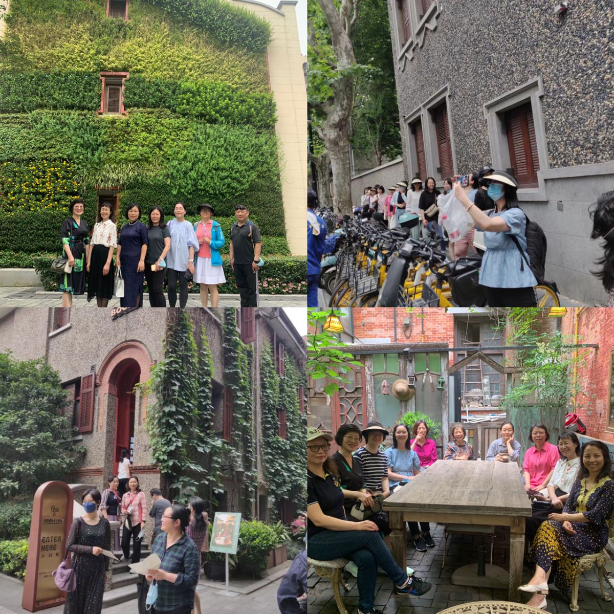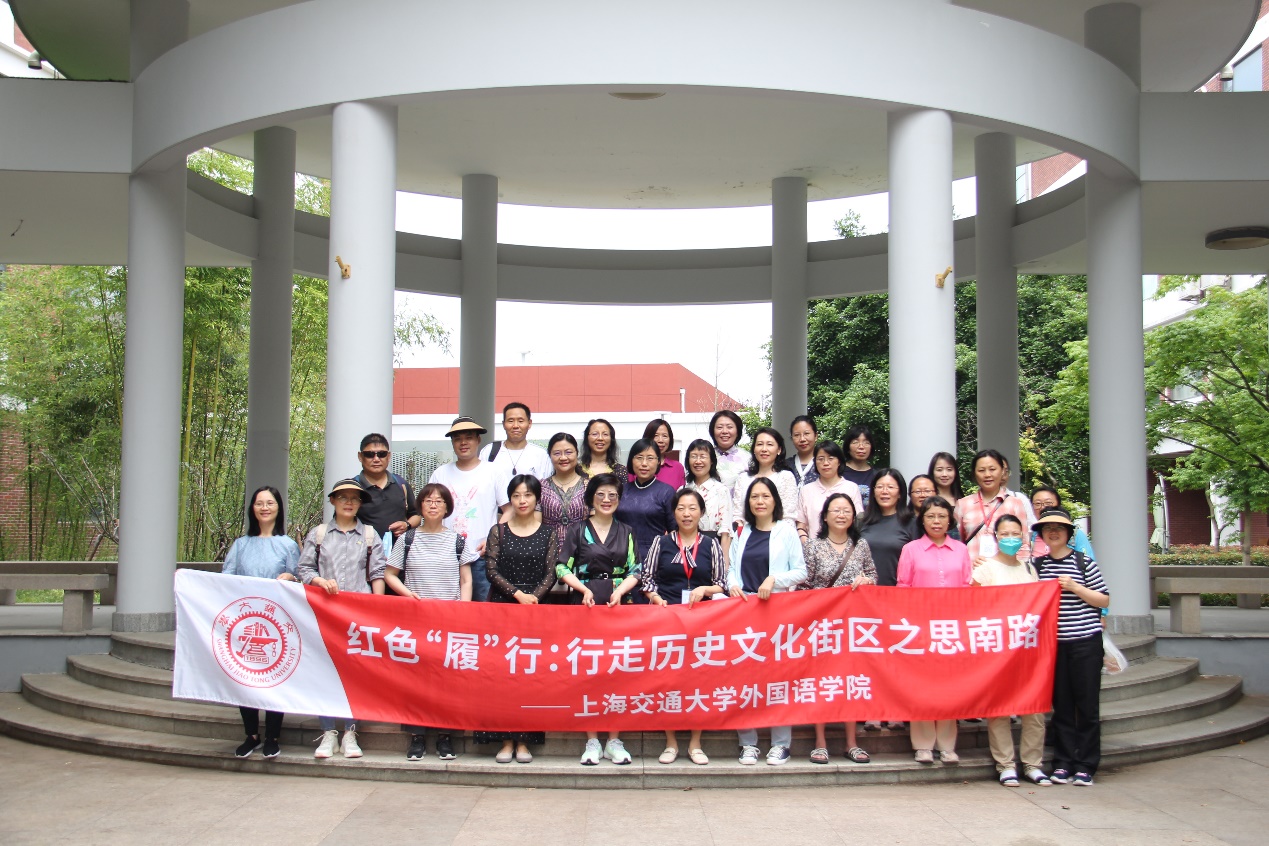 参加活动的部分教师在杨咏曼楼前集体合影后,乘坐大巴士来到了医学院重庆南路校区,与等候在此的黄埔小分队汇合。大家观览了古朴庄严的老红楼并欣然留影,穿过小侧门,信步便来到了思南路上。思南路原名马斯南路,为了纪念法国音乐家Jules Massenet而命名。1946年后用贵州省的思南县命名。在这条掩映在高大梧桐树浓荫下的幽静小马路上,坐落着无数的名人故居与特色建筑。