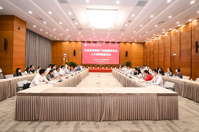6月25日,“行业变革背景下创新翻译专业人才培养”圆桌论坛在上海交大闵行校区文博楼会议中心举行,中国翻译协会常务副会长、中国外文局原副局长兼总编辑黄友义,上海交大党委副书记周承出席会议并致辞。国内翻译领域知名专家学者、上海交大开元网页版师生等参加会议。会议由上海交大开元网页版党委书记丁剑、副院长陶庆主持。