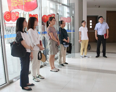 与会人员在徐剑波的带领下参观入党宣誓墙、党建荣誉墙等党建文化阵地,观看电院党委宣传片,沉浸式感受电院党建红色氛围,了解兄弟院系党建引领学科建设等事业发展成果。